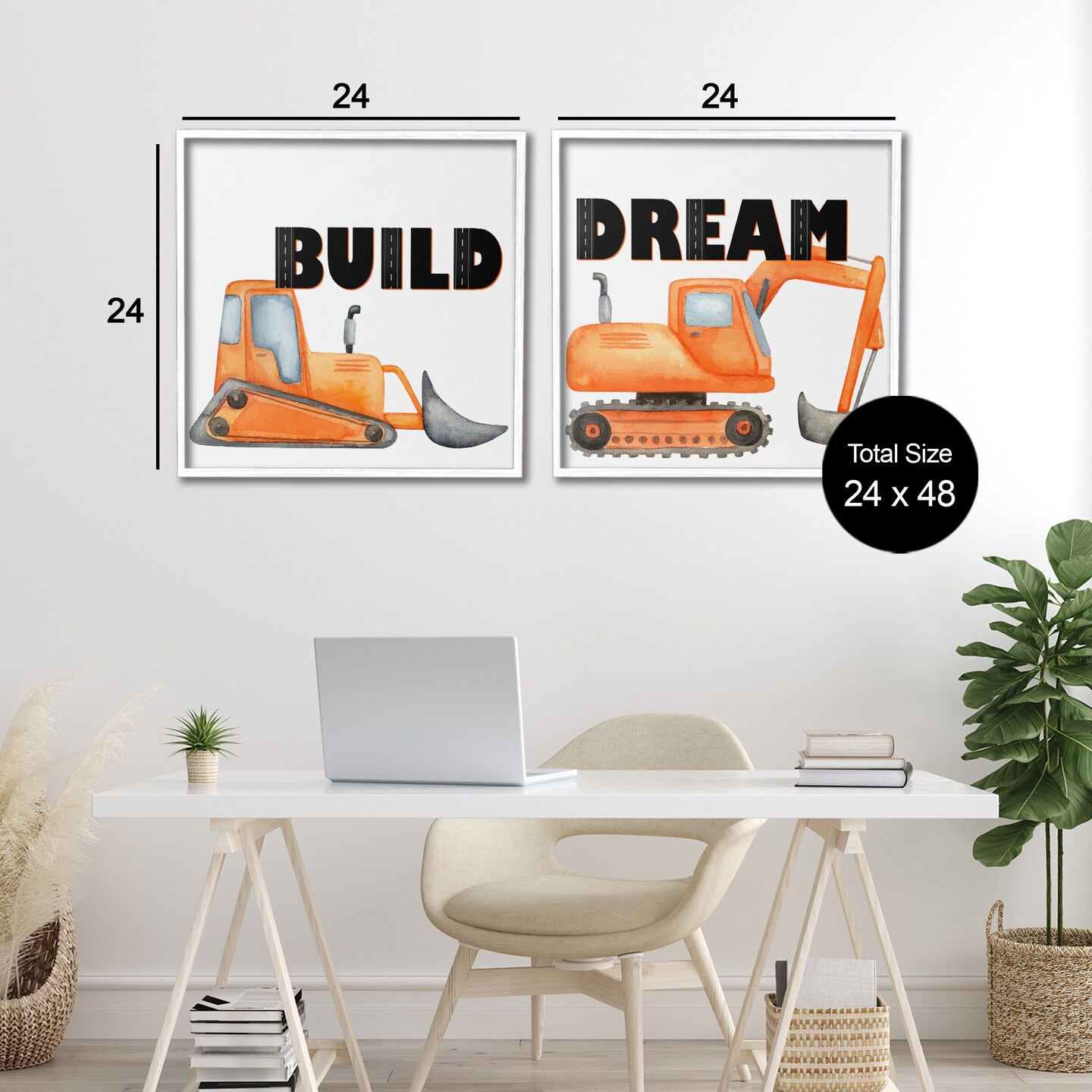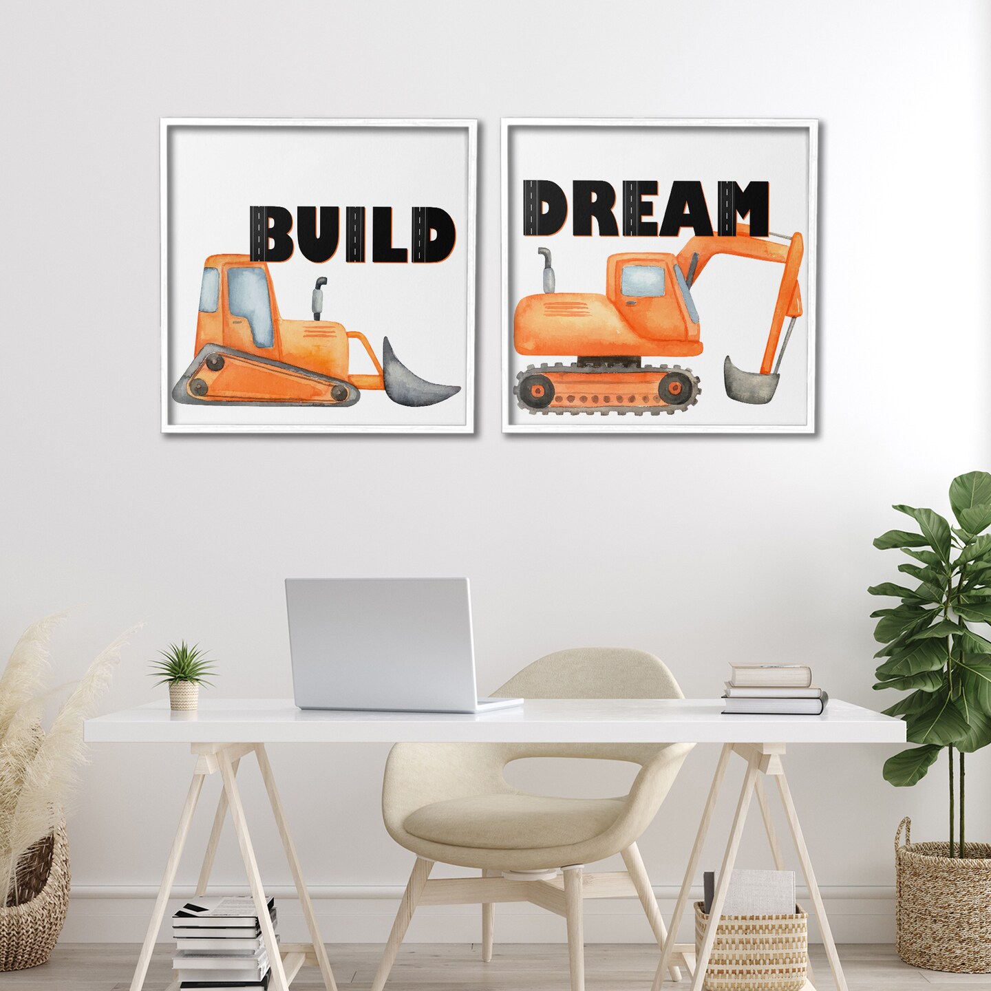 Stupell Industries Build & Dream Construction Vehicles 2pc Framed Giclee Set, design by Kim Allen