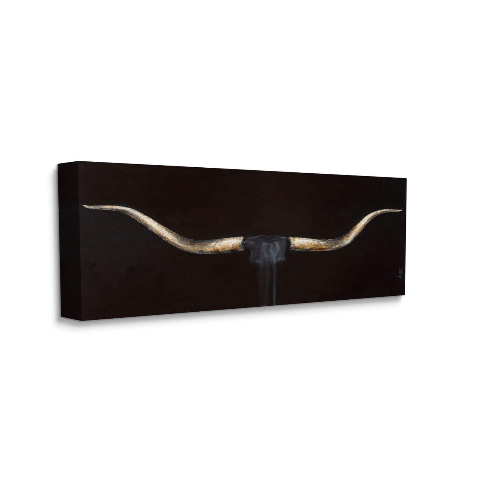 Stupell Industries Bull Horns Shadow Black Brown Animal Painting Canvas Wall Art