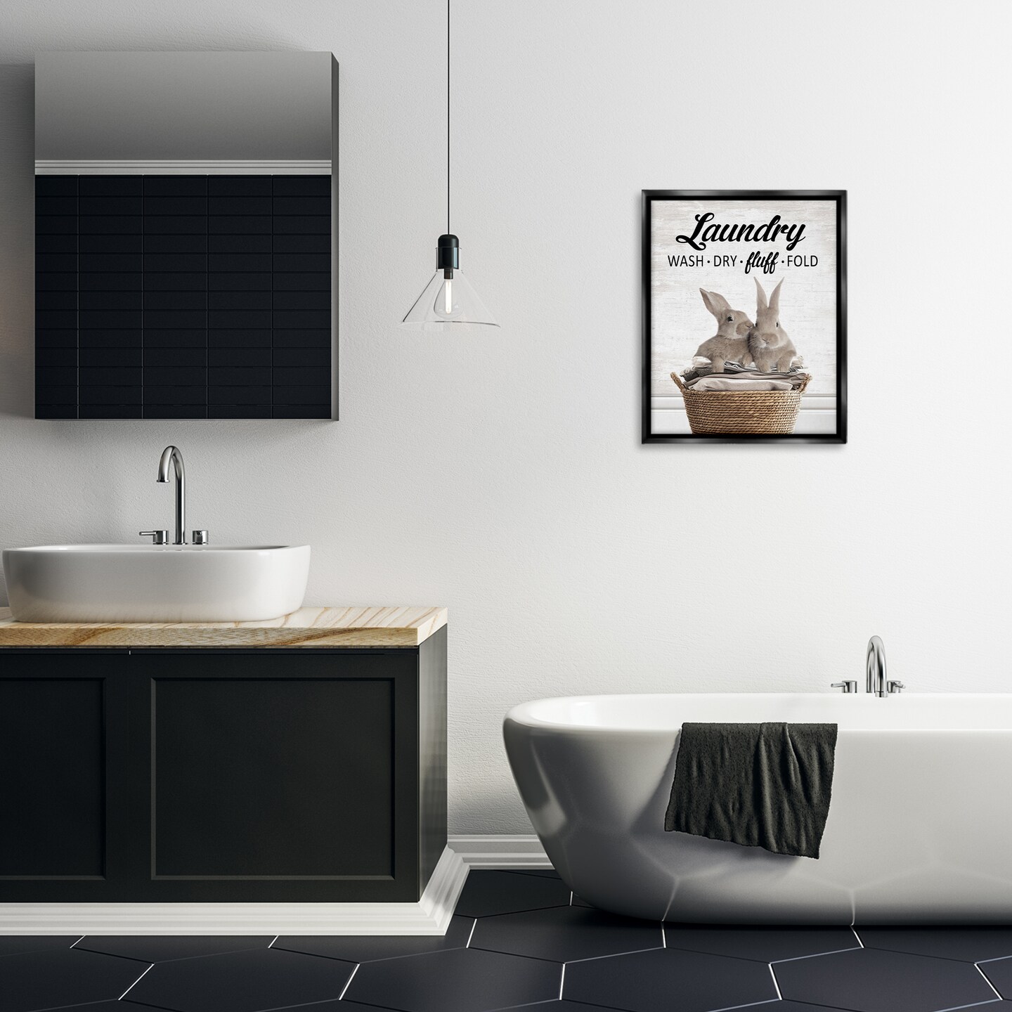 Stupell Industries Bunnies & Laundry Basket Floating Frame Design by Lettered and Lined