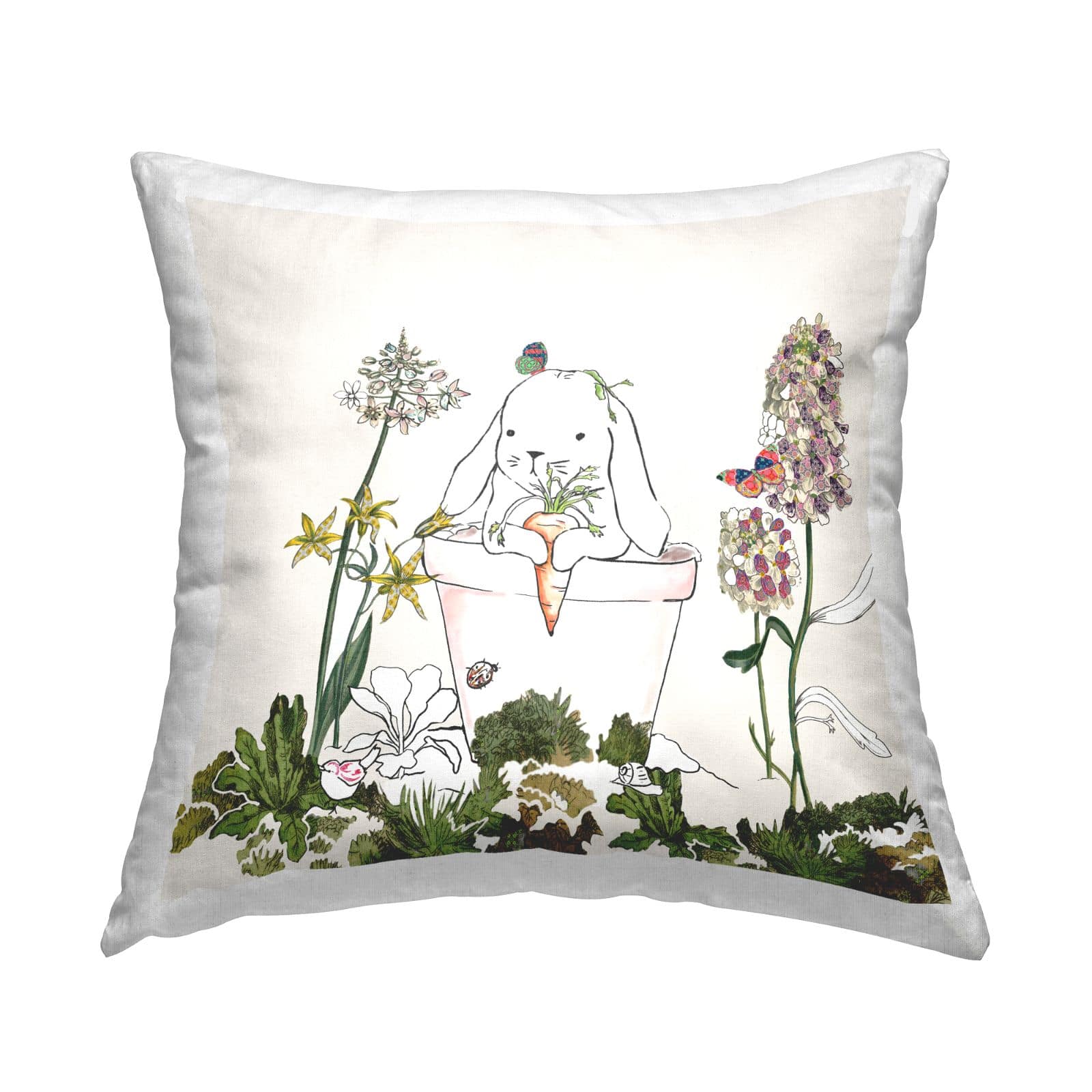 Stupell Industries Bunny Flower Pot Botanical Lilac Floral Blooms Throw Pillow, 18" x 18"
