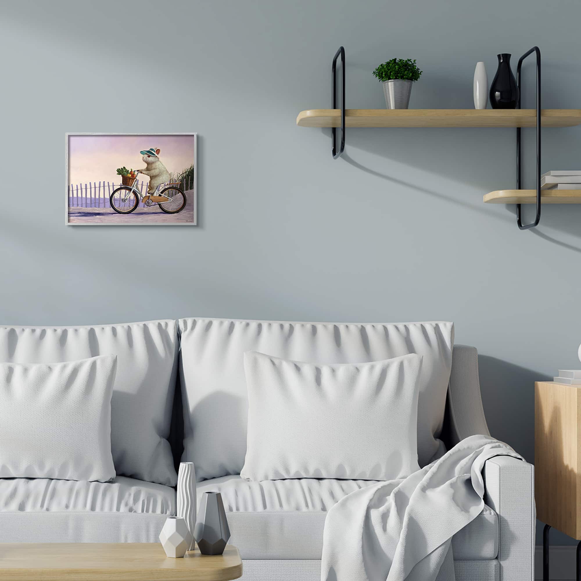 Stupell Industries Bunny Rabbit on Bike by Nautical Beach Framed Wall Art