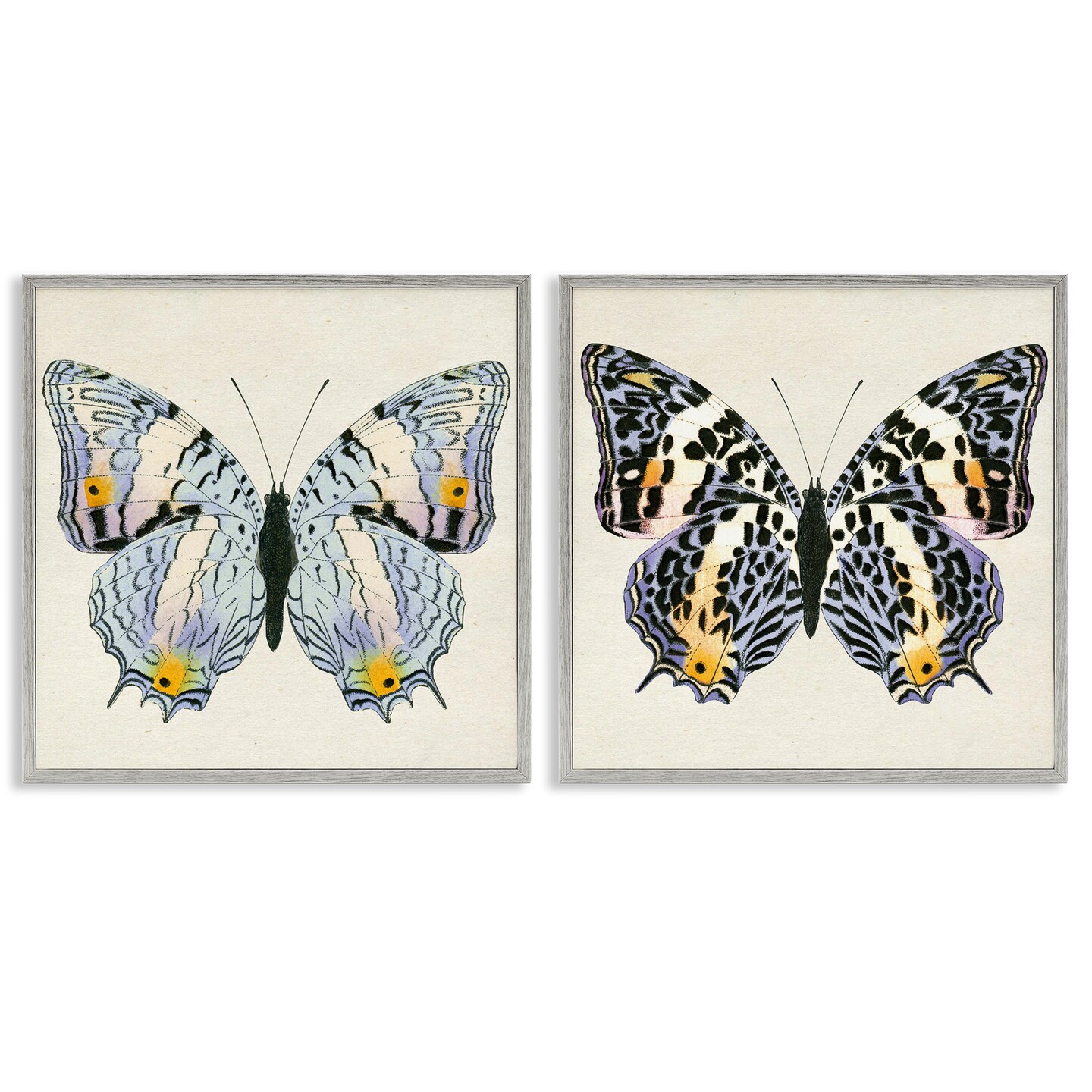 Stupell Industries Butterflies with Yellow Details 2pc Framed Giclee Wall Art Set Design by Susan Arnot