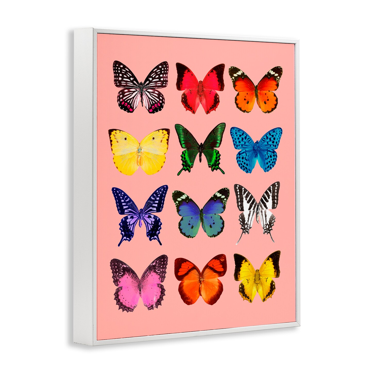 Stupell Industries Butterfly Species on Pink Framed Giclee, design by LISH Creative