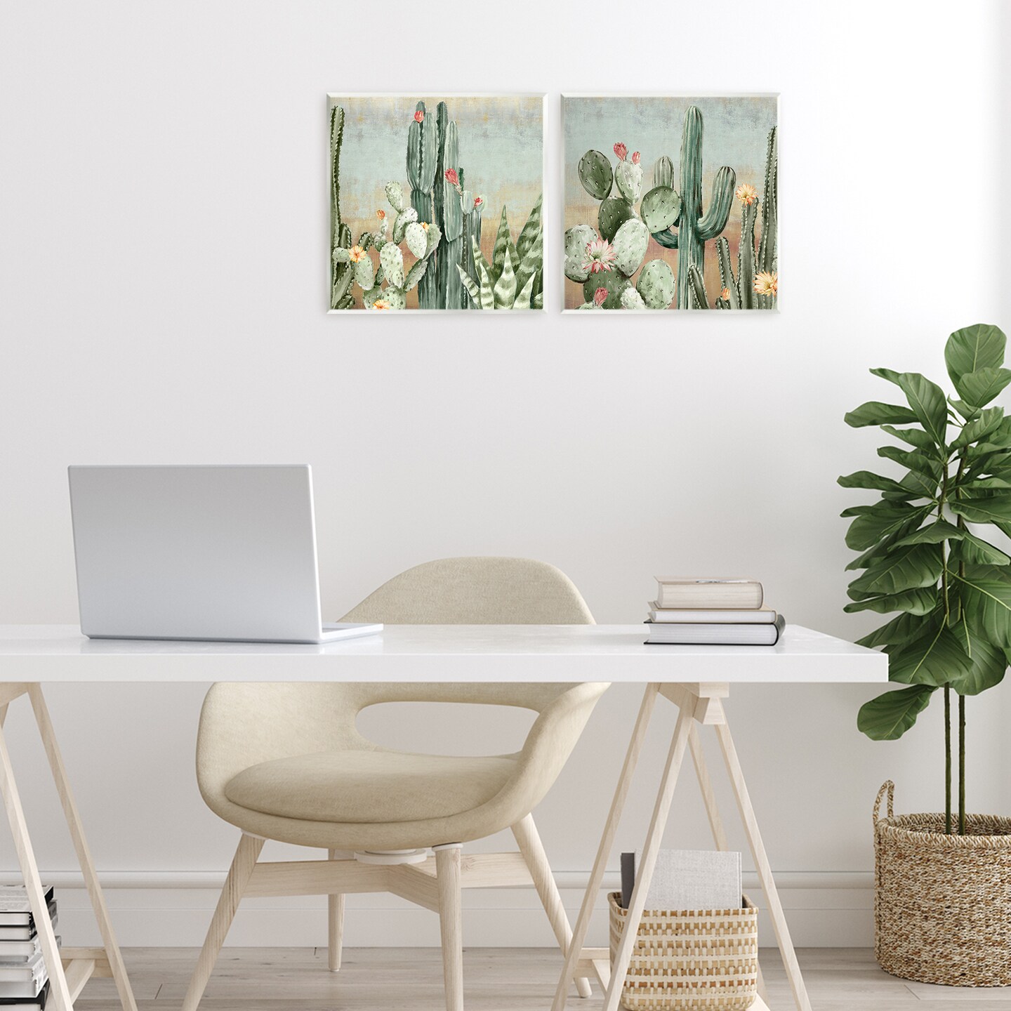 Stupell Industries Cactus Blooms Among Thorns 2pc Wall Plaque Set, design by Luna Mavis