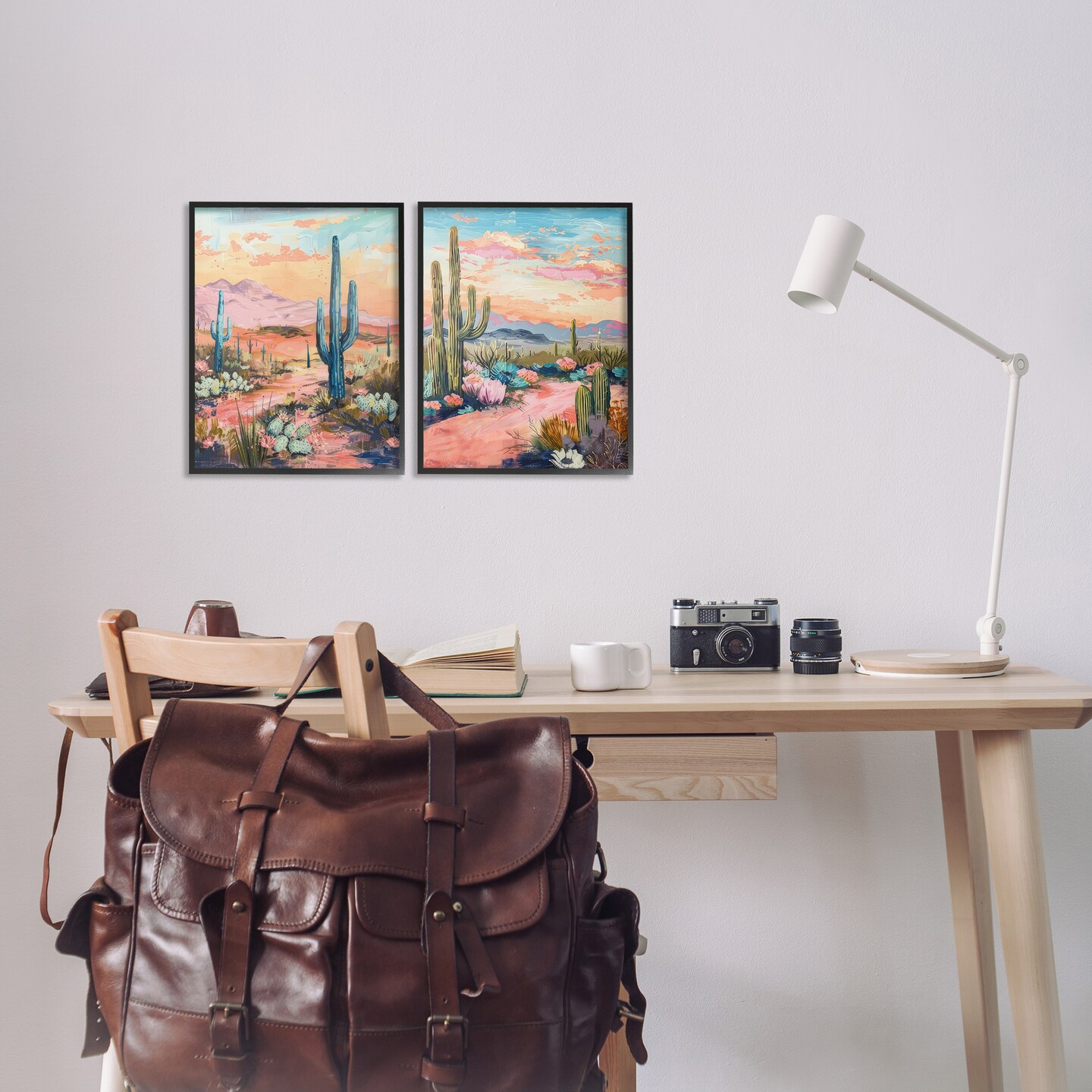 Stupell Industries Cactus Paths & Sunset 2pc Framed Giclee Wall Art Set Design by LSR Design Studio