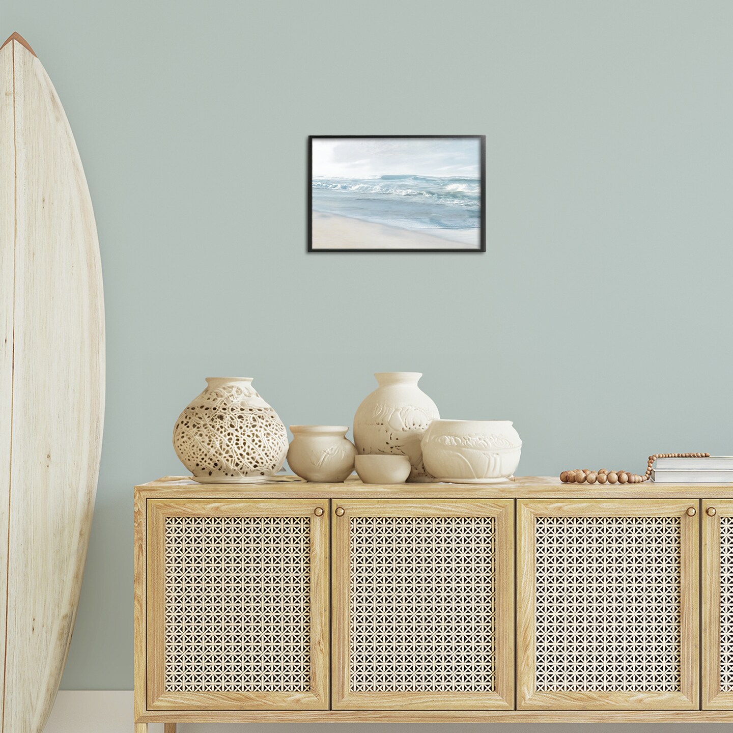 Stupell Industries Calm Blue Beach Waves Framed Giclee Wall Art Design by Mike Calascibetta