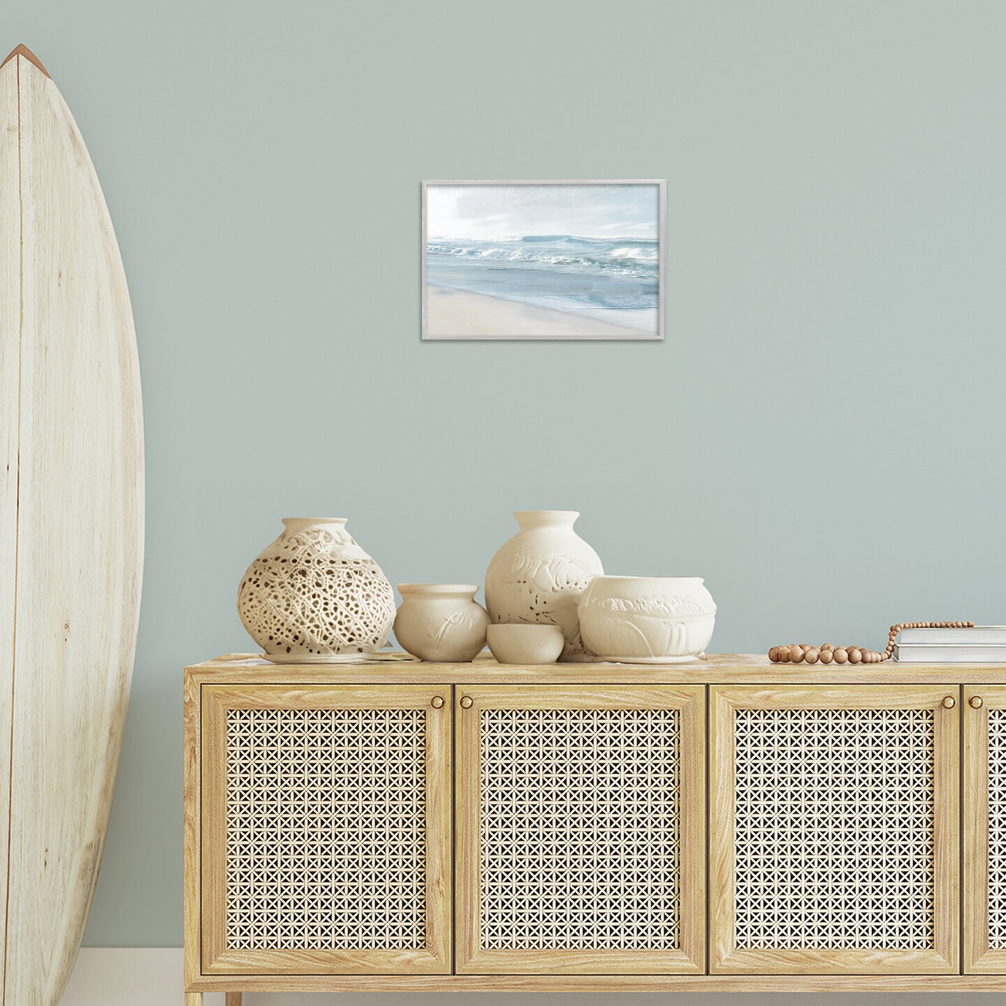 Stupell Industries Calm Blue Beach Waves Framed Giclee Wall Art Design by Mike Calascibetta