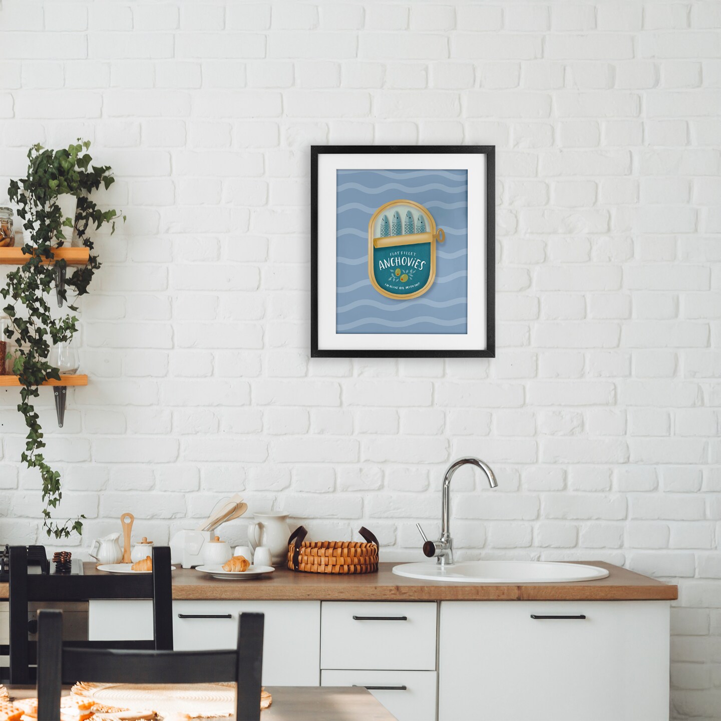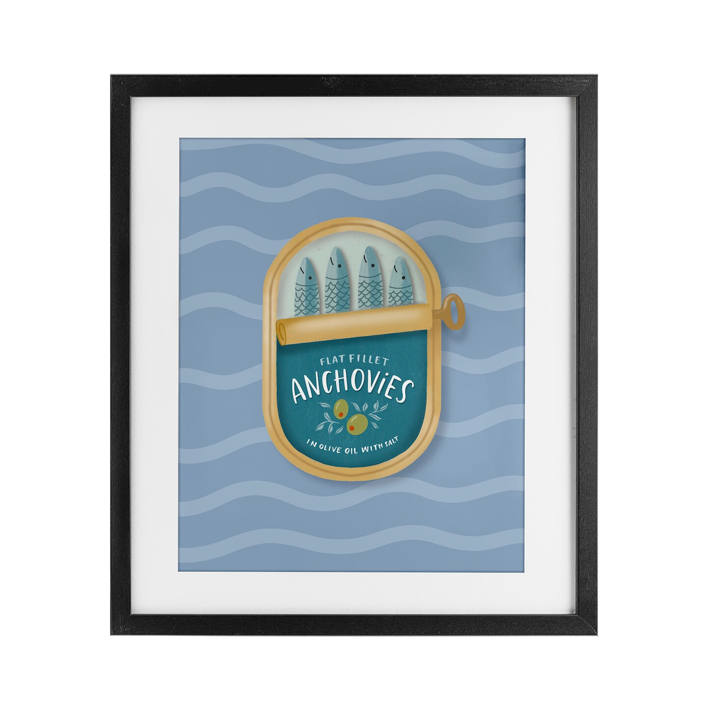 Stupell Industries Canned Anchovies on Waves Framed Print Under Glass, design by Sandra Picco