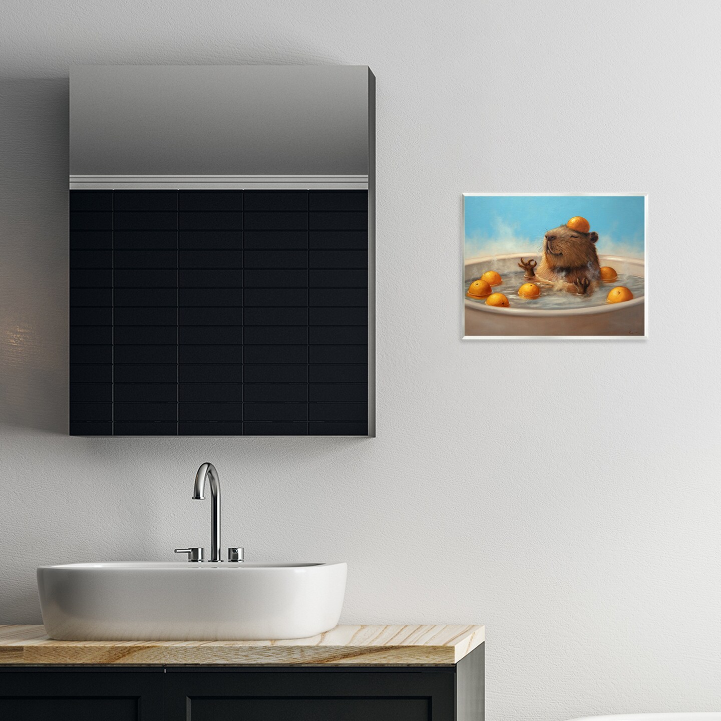 Stupell Industries Capybara in Orange Bath Wall Plaque Design by Lucia Heffernan