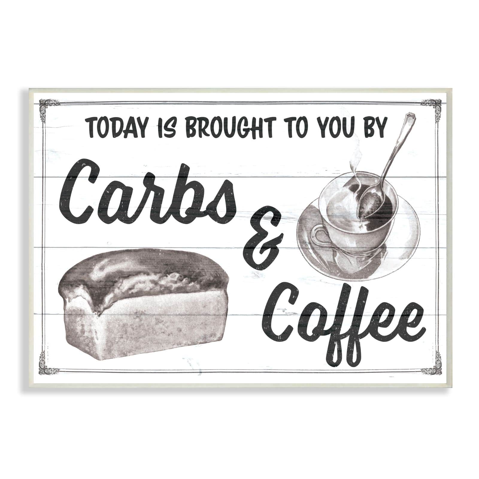 Stupell Industries Carbs and Coffee Kitchen Humor Rustic Word Design Wood Wall Plaque