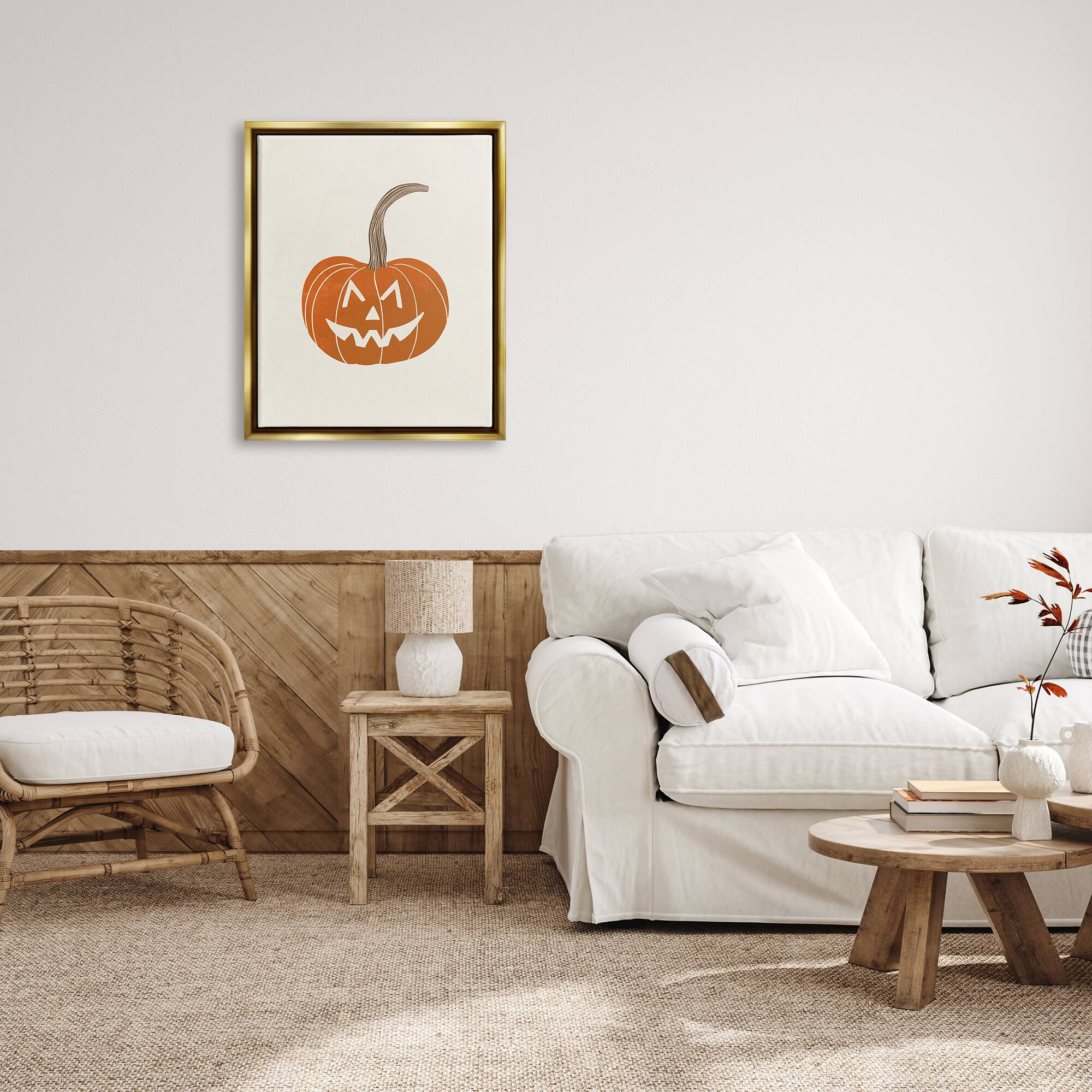 Stupell Industries Casual Jack-o-Lantern Smile Framed Floater Canvas Wall Art