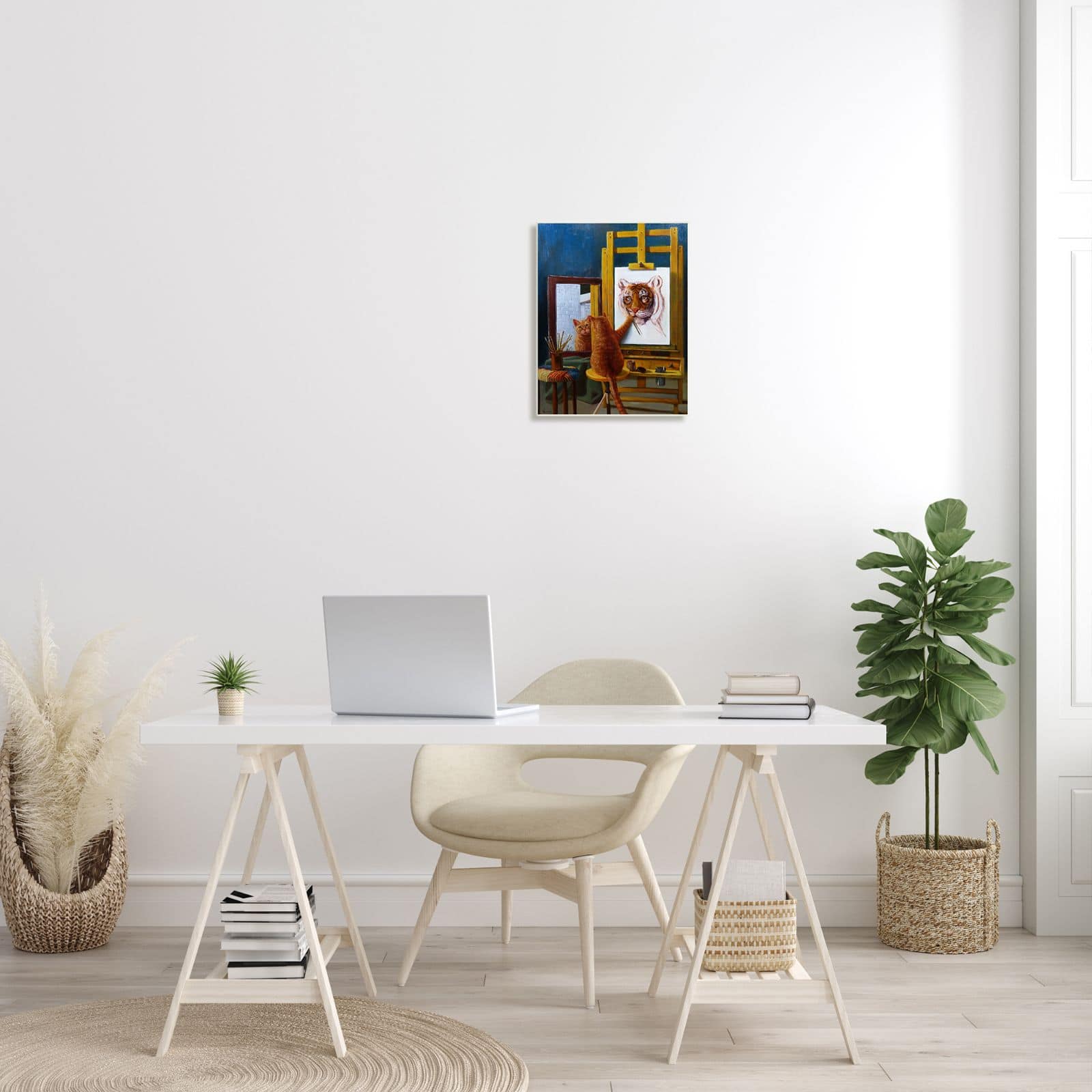 Stupell Industries Cat Confidence Self Portrait as a Tiger Funny Painting Wood Wall Plaque