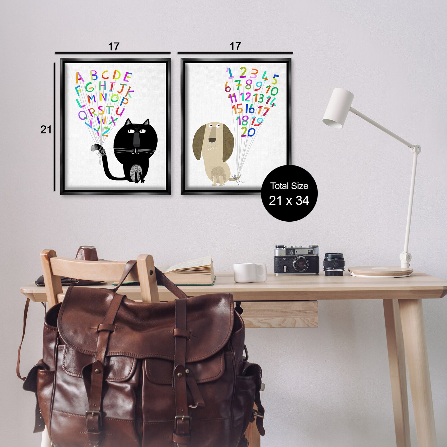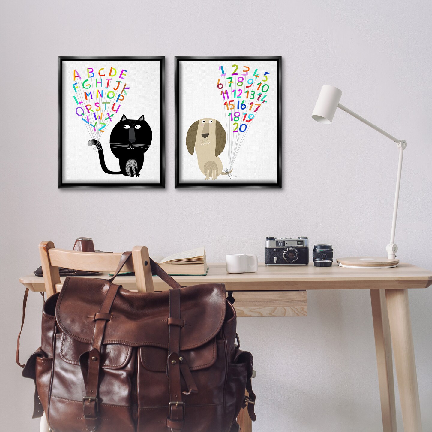 Stupell Industries Cat Dog Alphabet Numbers 2 pc Framed Floater Canvas Wall Art Set Design by Carla Daly