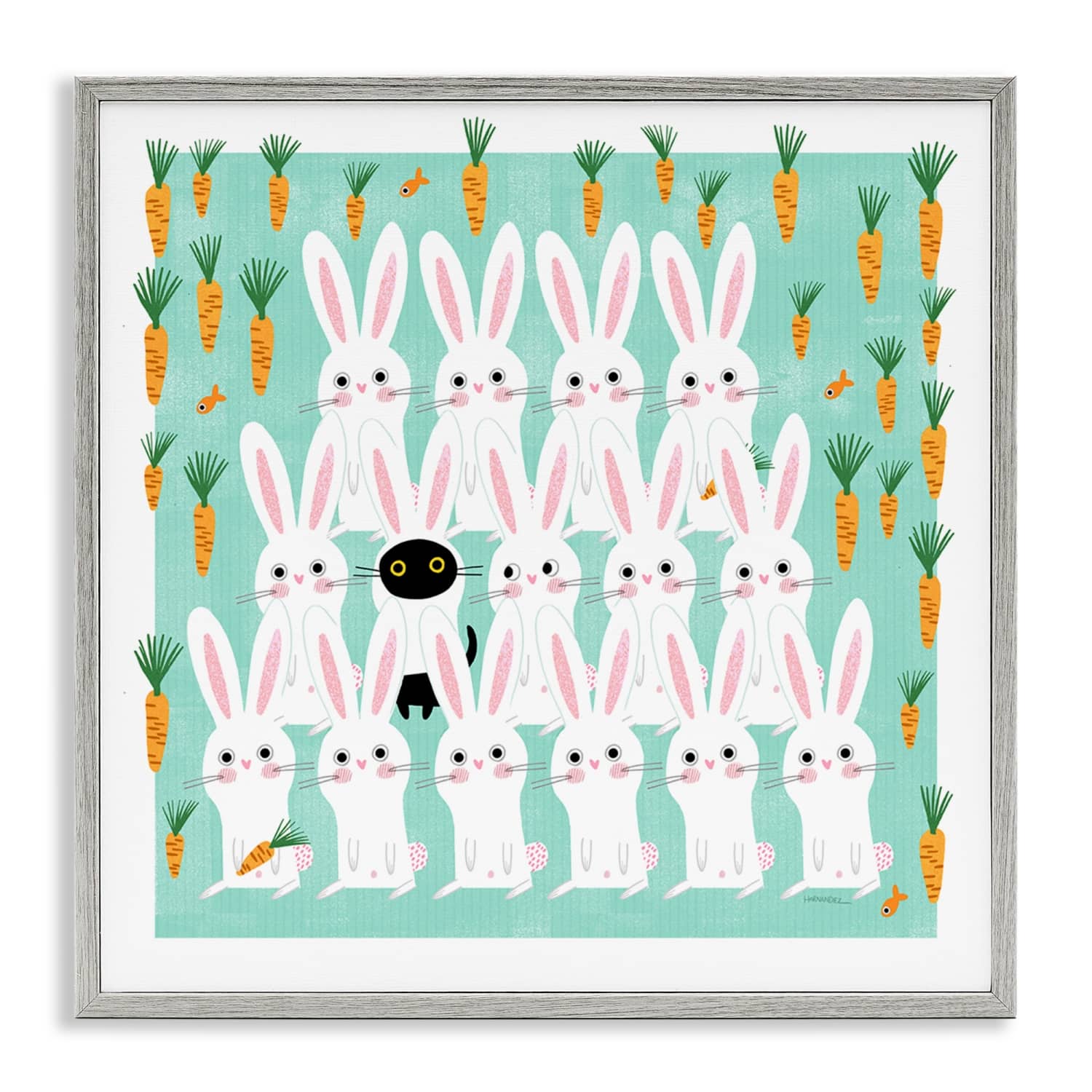 Stupell Industries Cat Mixed with Bunnies Framed Giclee Art