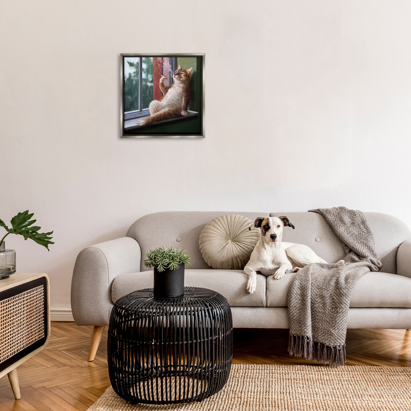 Stupell Industries Cat Smoking Lounging in Window Framed Floater Canvas Wall Art