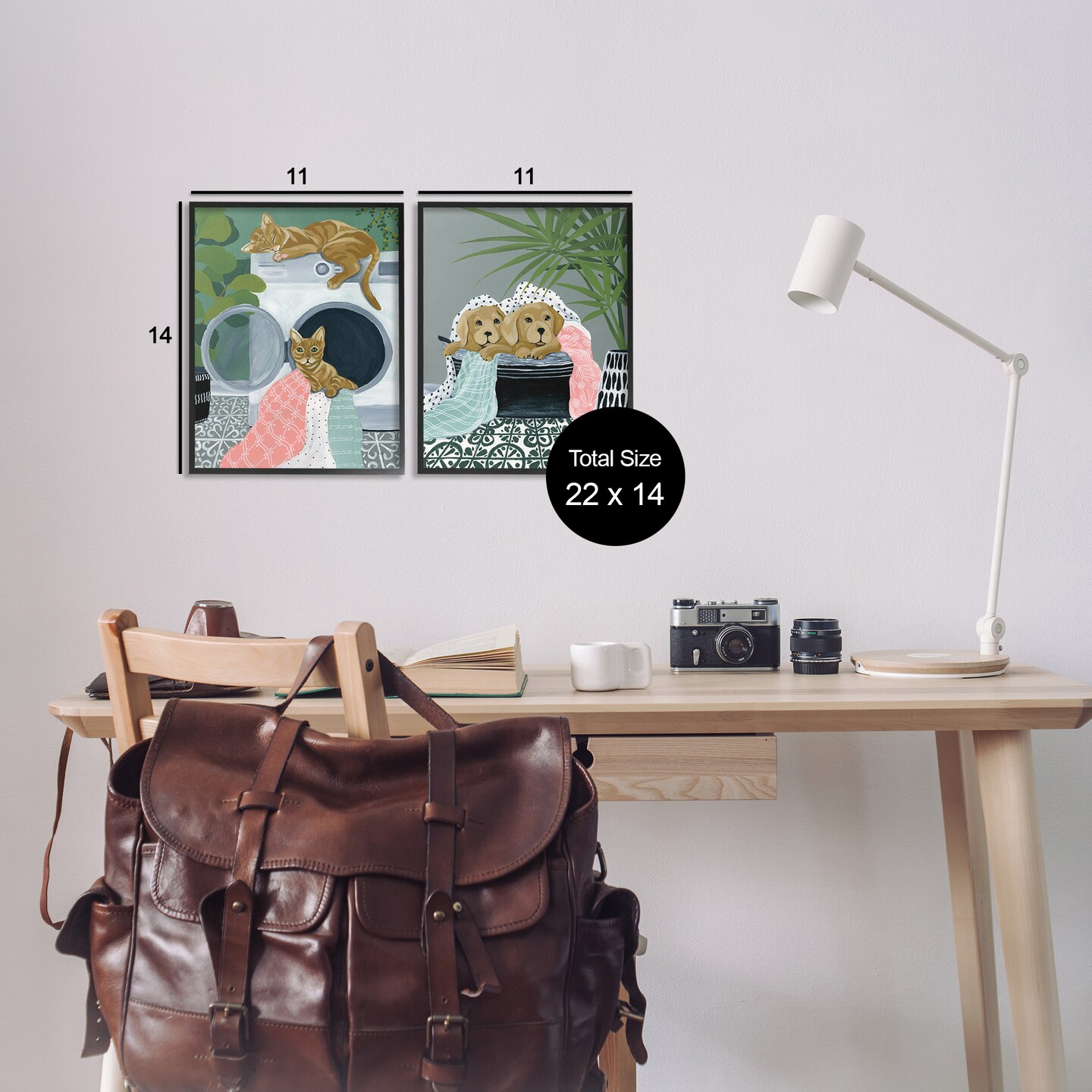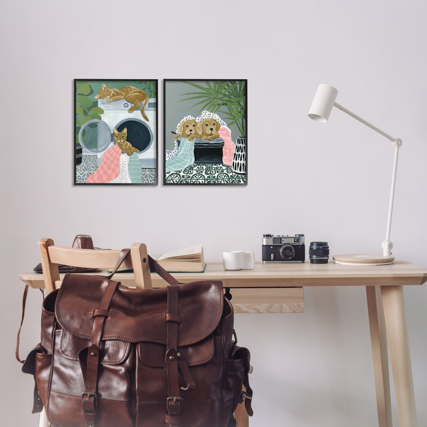 Stupell Industries Cats & Dogs Laundry Room 2pc Framed Giclee Wall Art Set Design by Yvette St. Amant