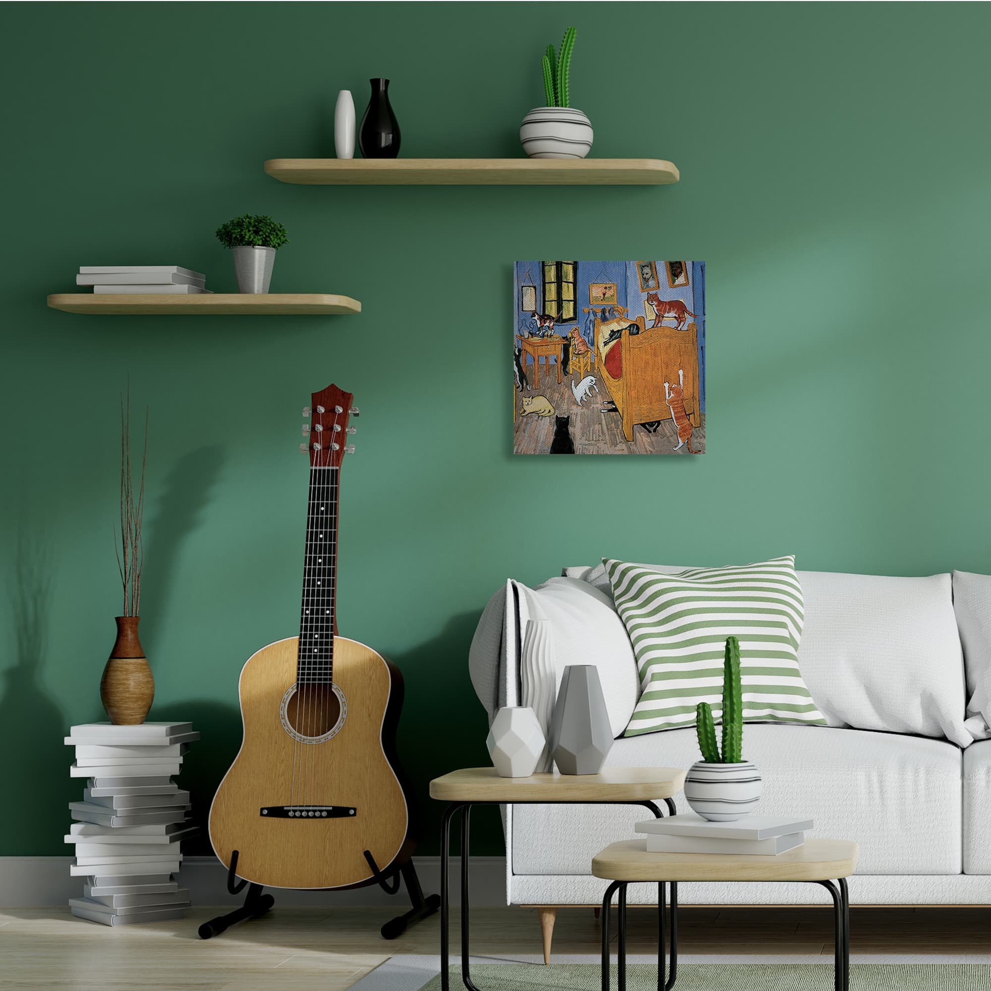 Stupell Industries Cats in The Bedroom Classic Painting Parody Canvas Wall Art