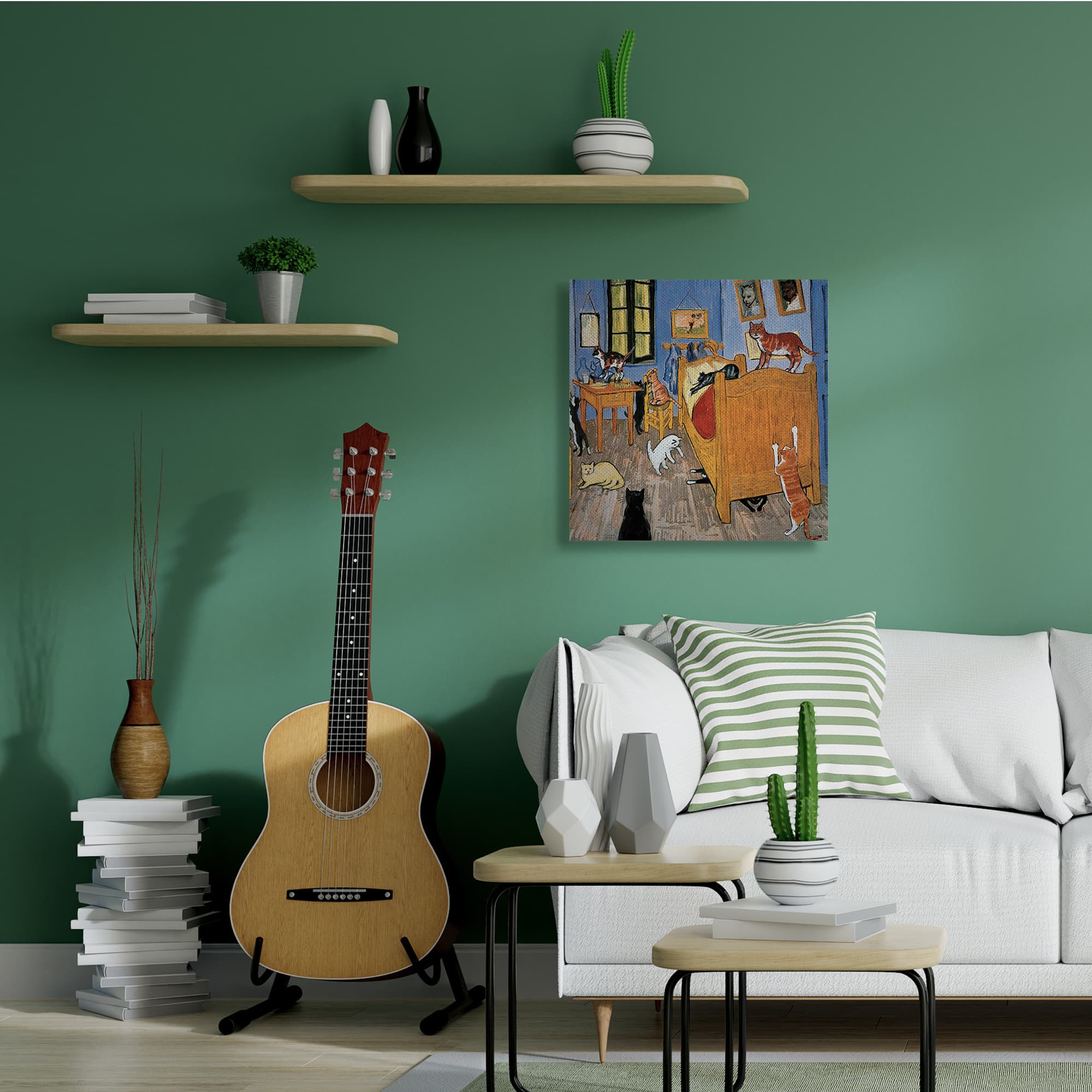 Stupell Industries Cats in The Bedroom Classic Painting Parody Canvas Wall Art