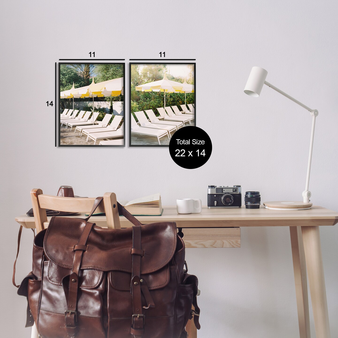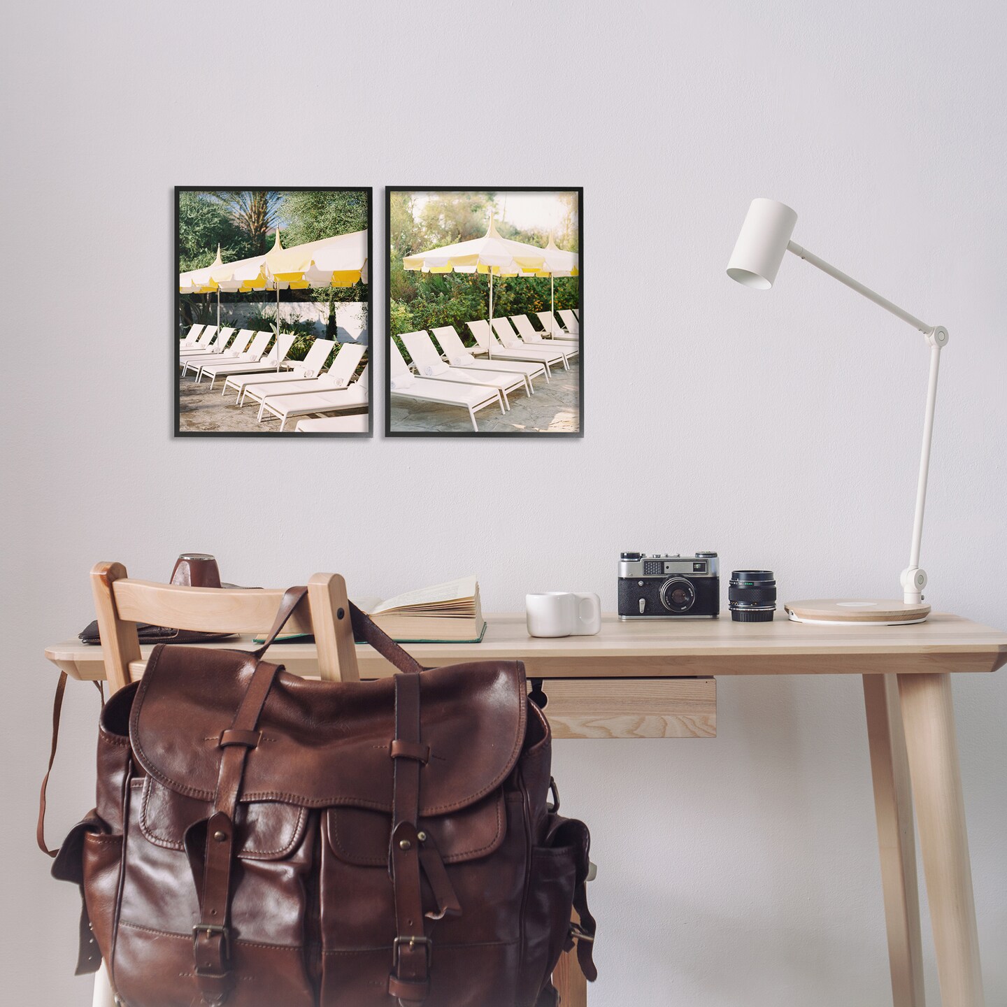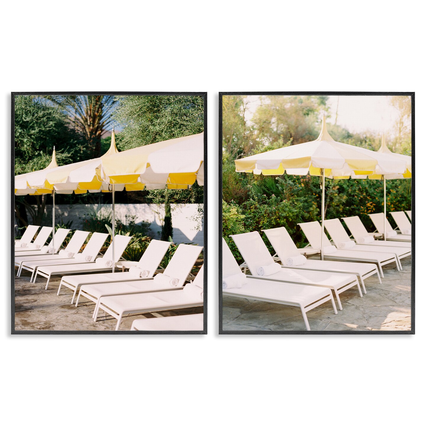 Stupell Industries Chaise Lounges with Umbrellas 2 pc Framed Giclee Wall Art Set Design by Justine Milton