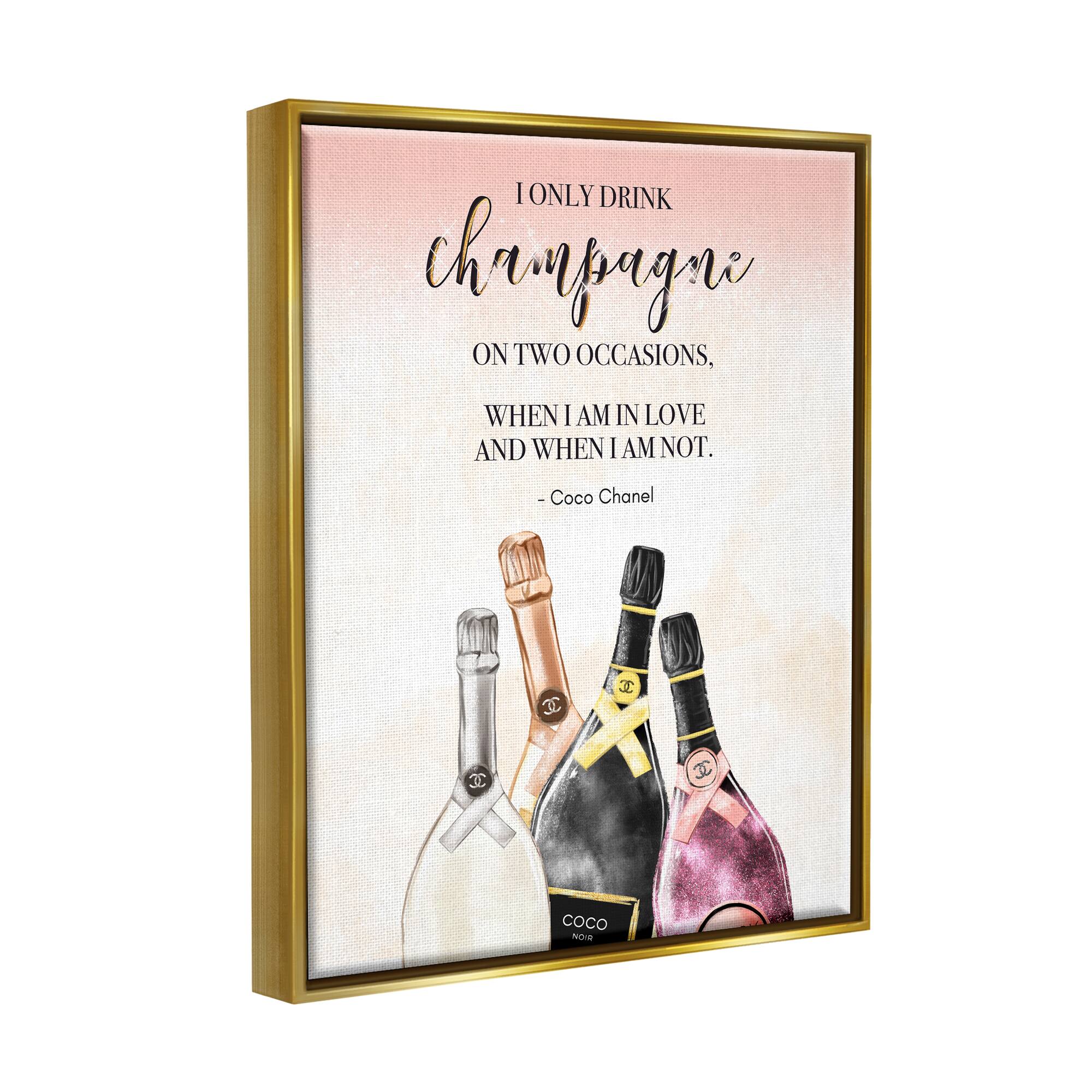 Stupell Industries Champagne and Love Quote Fashion Designer Glam Text Framed Floater Canvas Wall Art