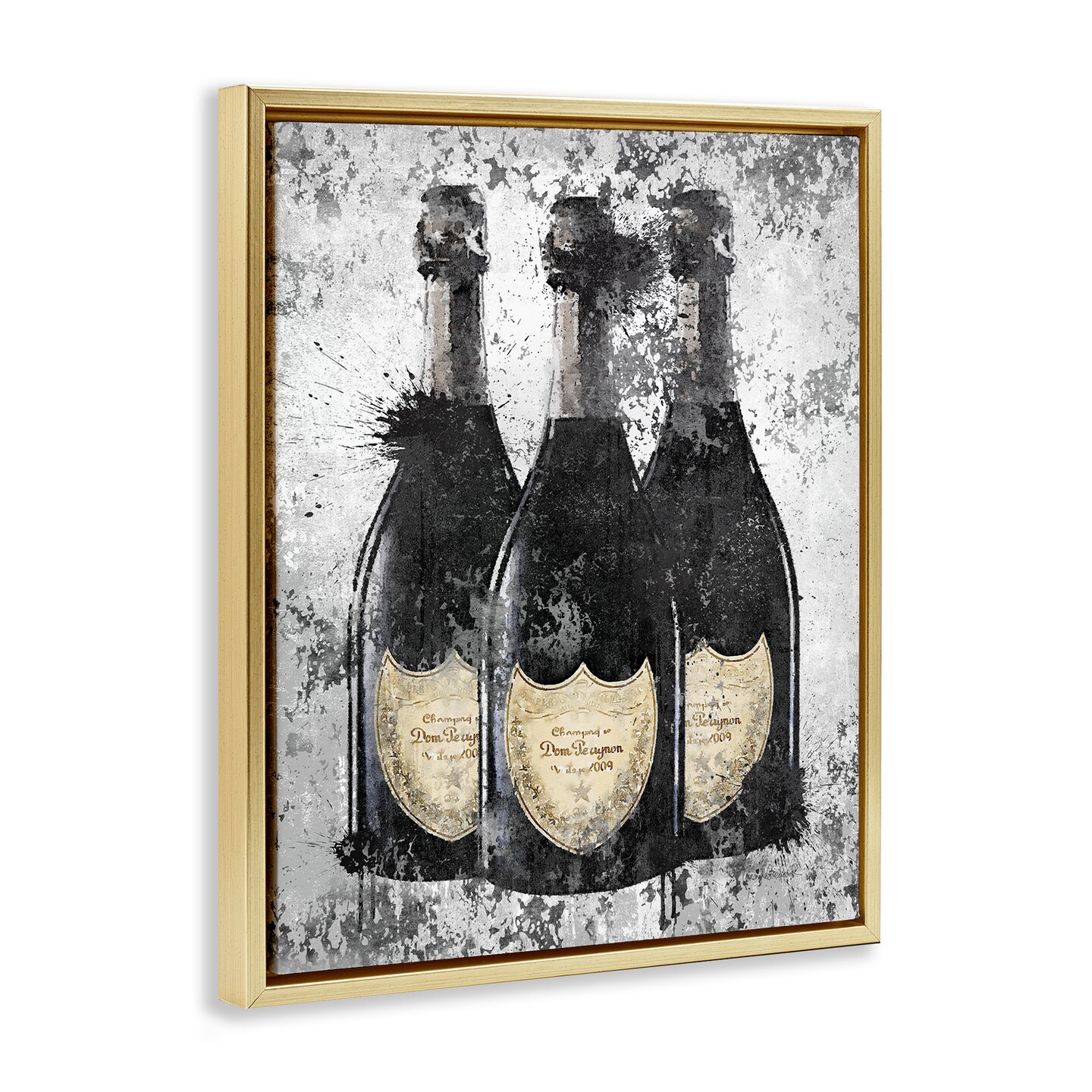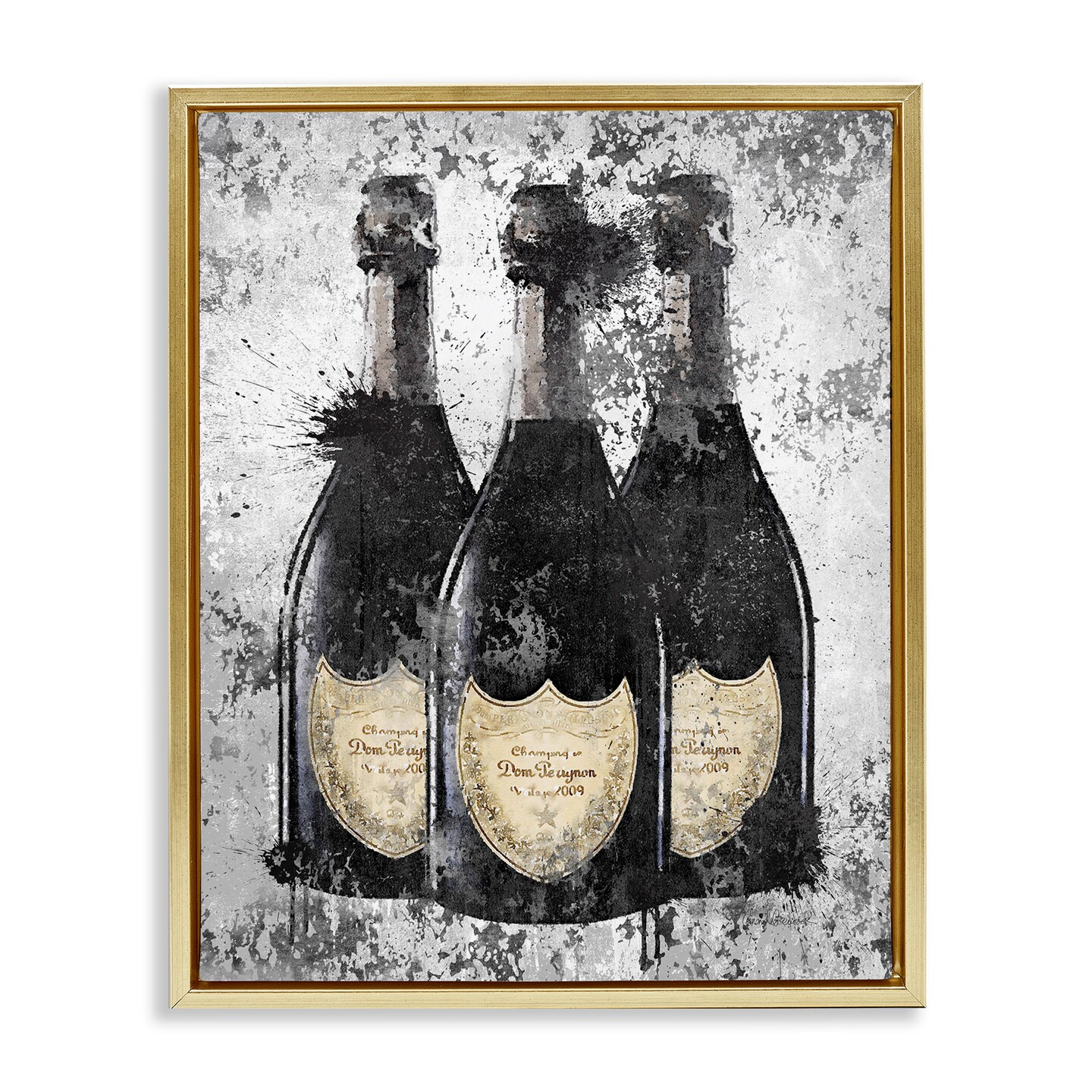 Stupell Industries Champagne Bottles Grey & Gold Framed Floater Canvas Wall Art