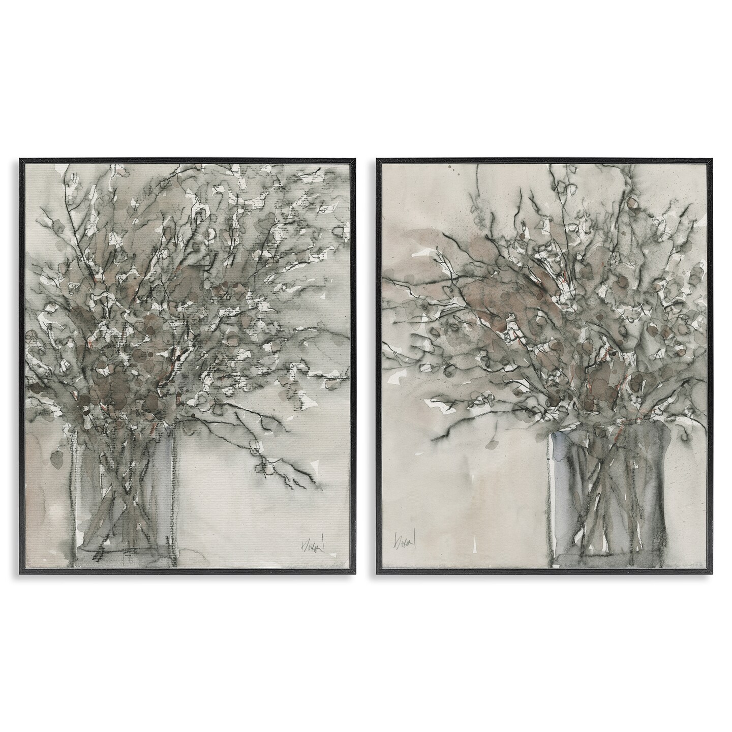 Stupell Industries Charcoal Sketched Vase 2pc Framed Giclee Wall Art Set Design by Samuel Dixon