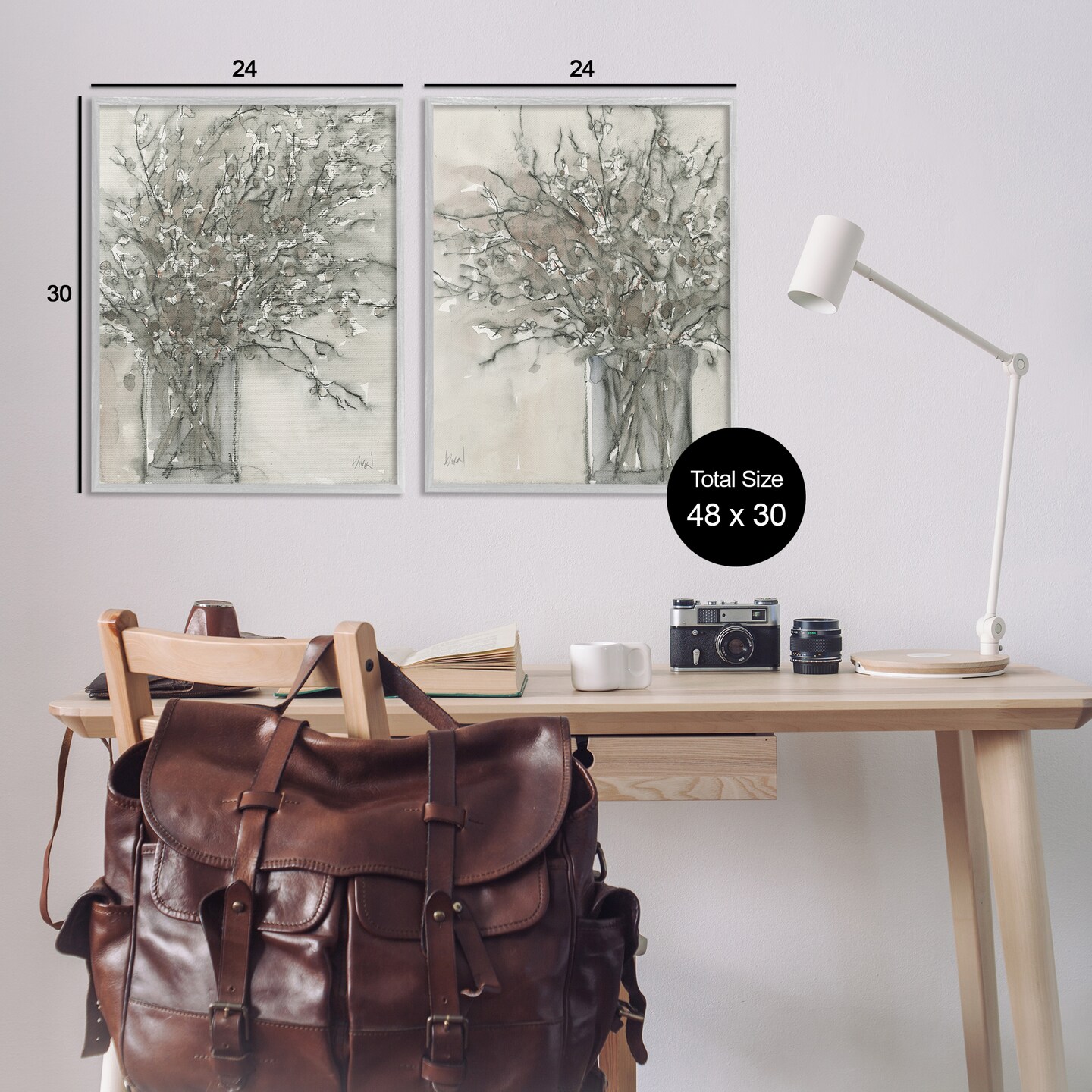 Stupell Industries Charcoal Sketched Vase 2pc Framed Giclee Wall Art Set Design by Samuel Dixon