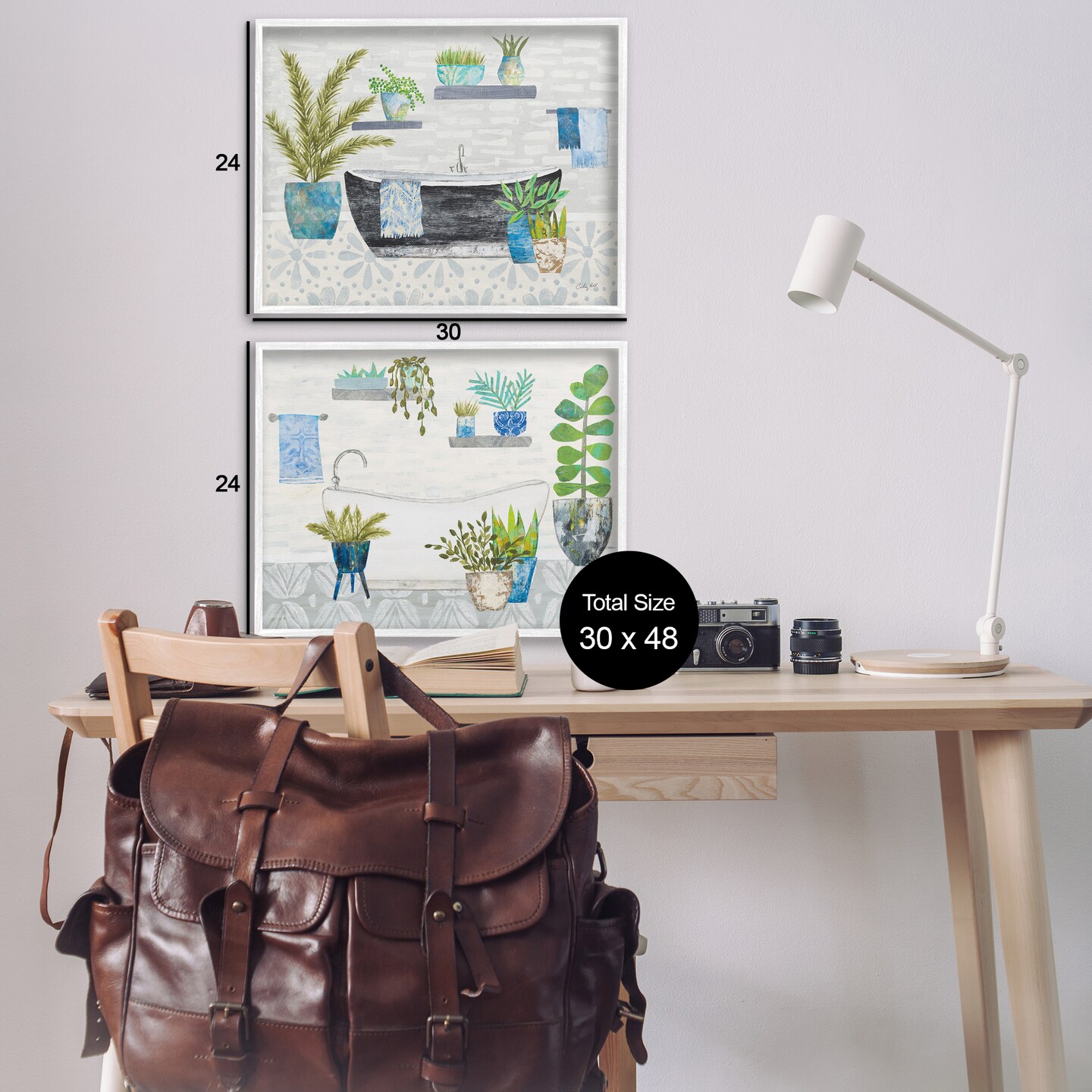 Stupell Industries Charming Botanical Bathroom 2pc Framed Giclee Wall Art Set Design by Courtney Prahl