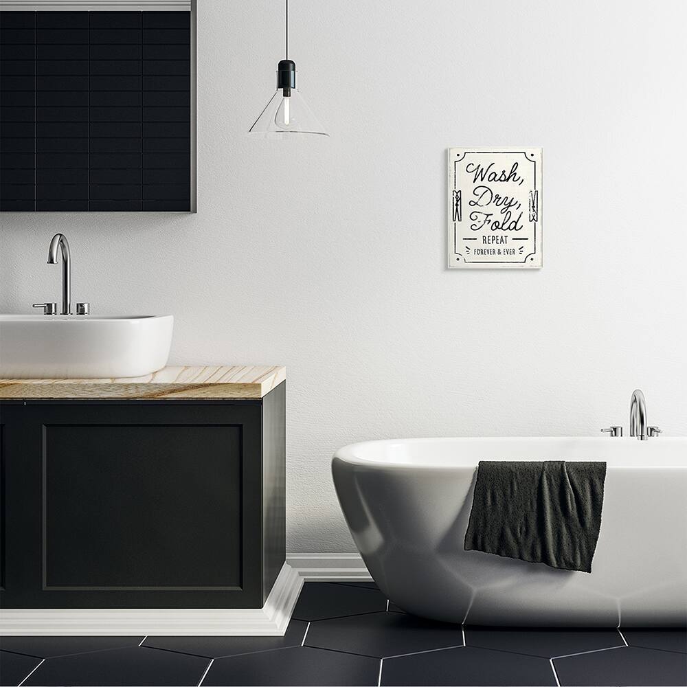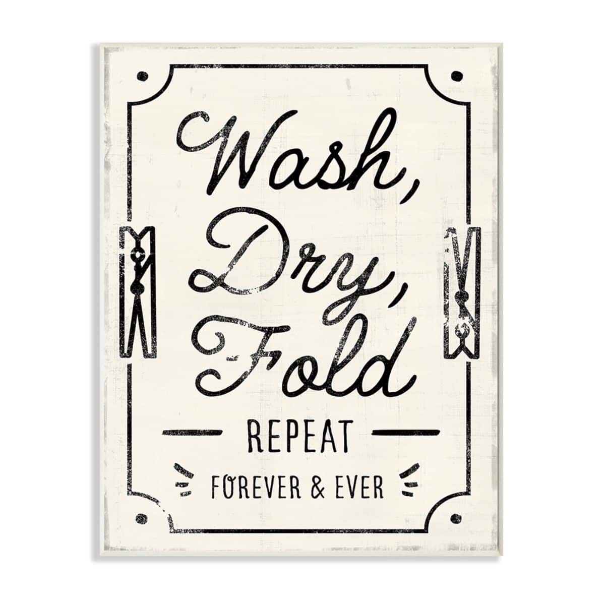 Stupell Industries Charming Retro Laundry Wash Dry Fold Repeat Wood Wall Plaque