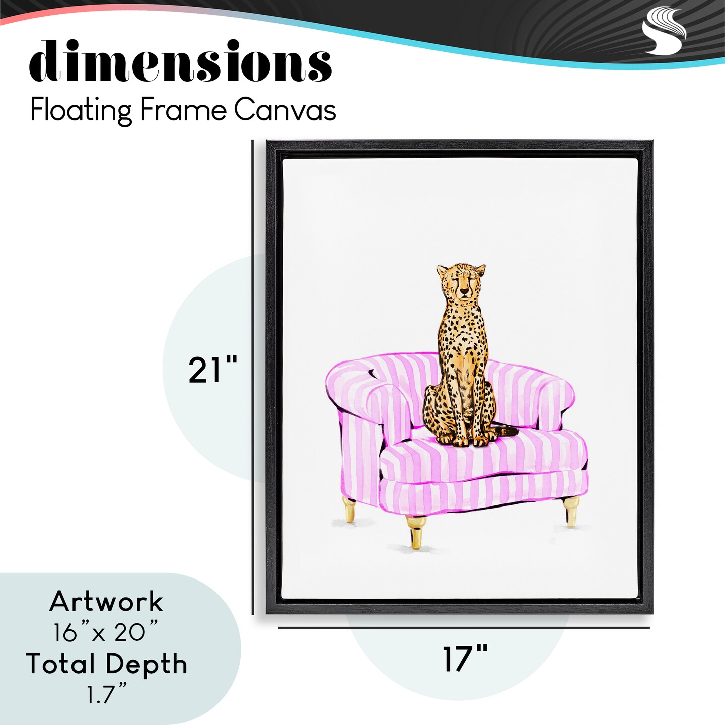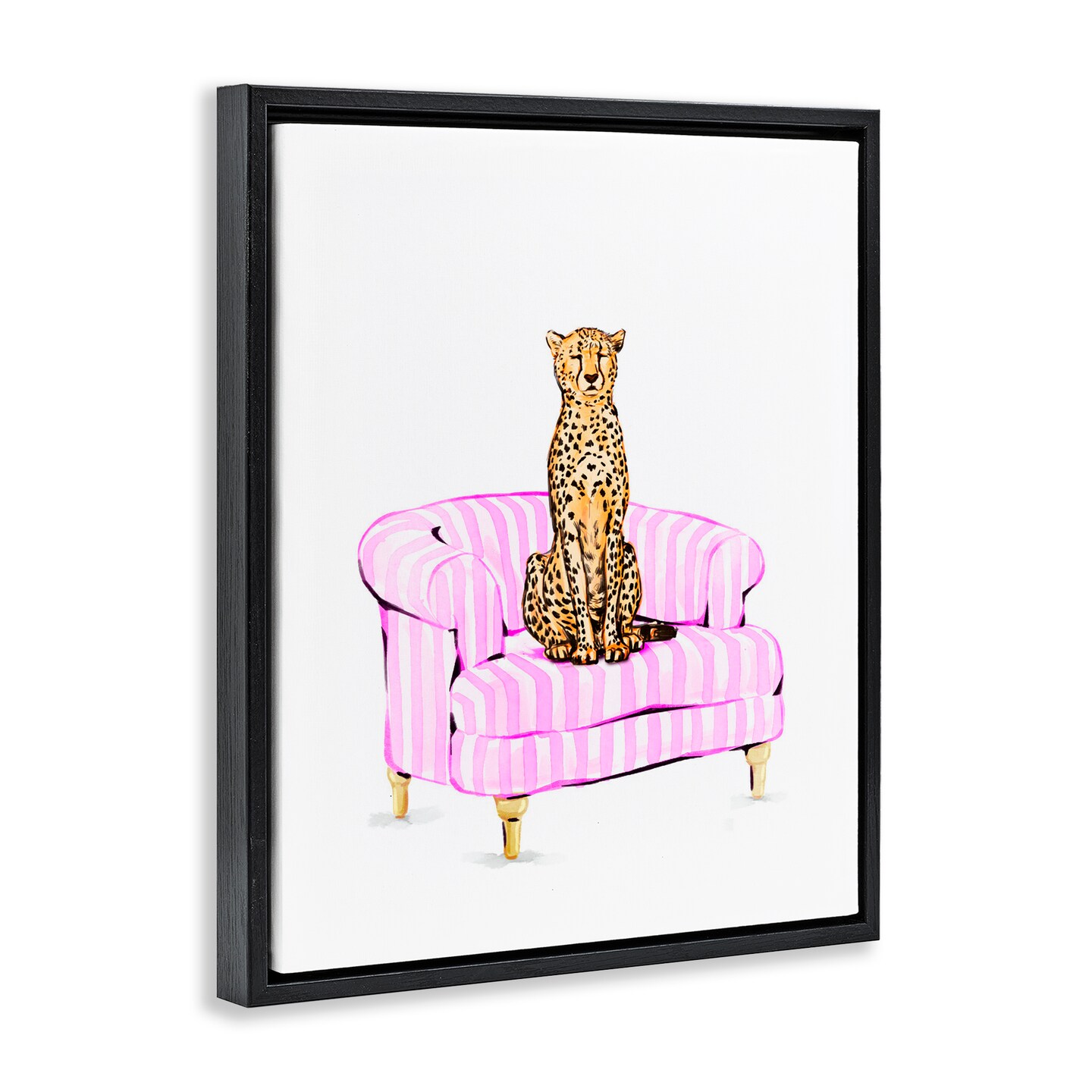 Stupell Industries Cheetah on Pink Stripe Chair Floating Frame, design by Ziwei Li