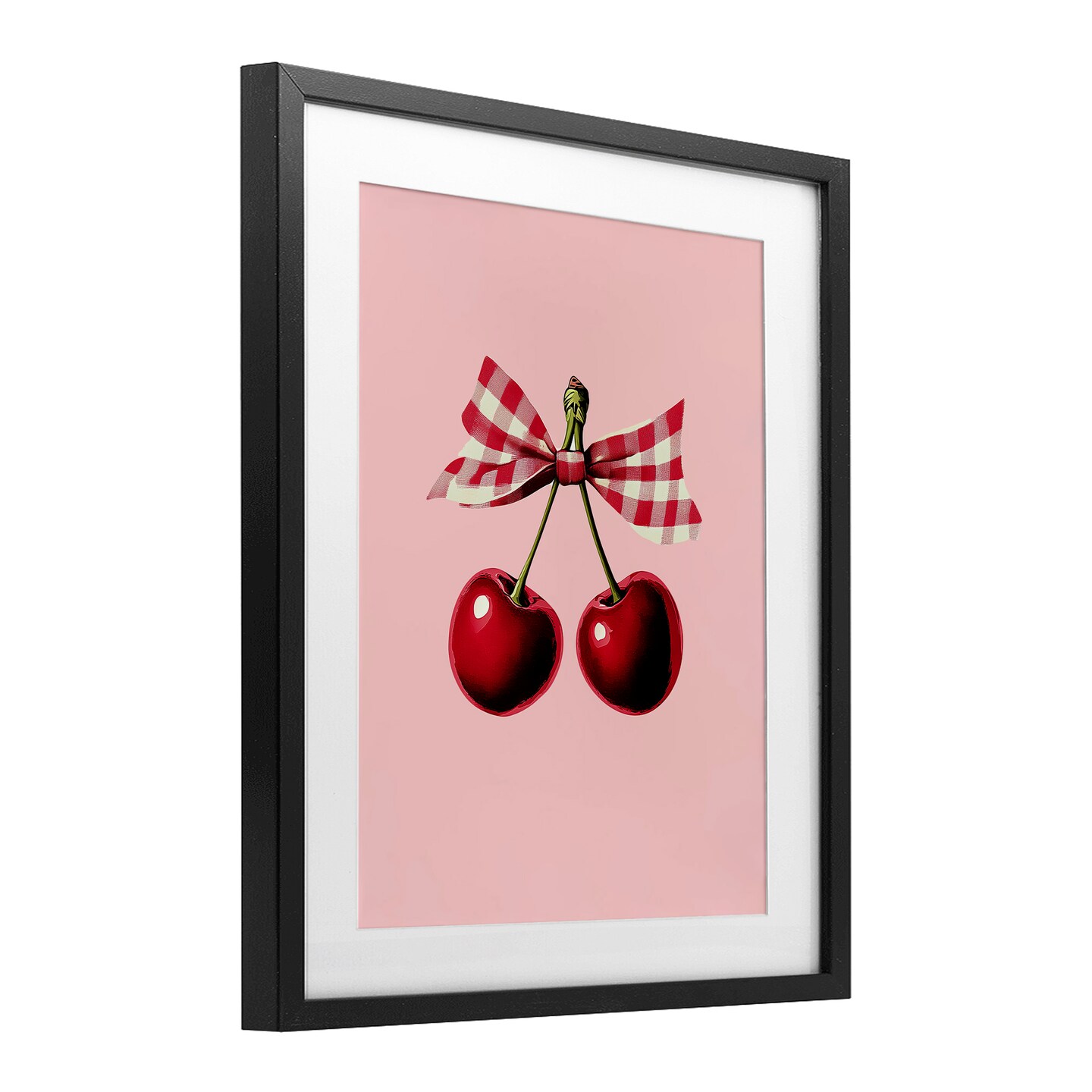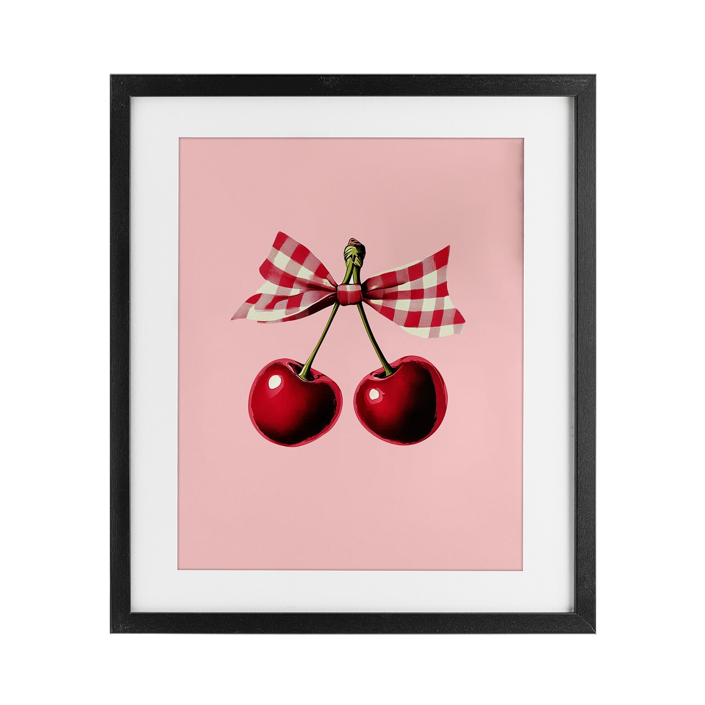 Stupell Industries Cherries with Gingham Bow Framed Print Under Glass, design by Christine Simpson Art