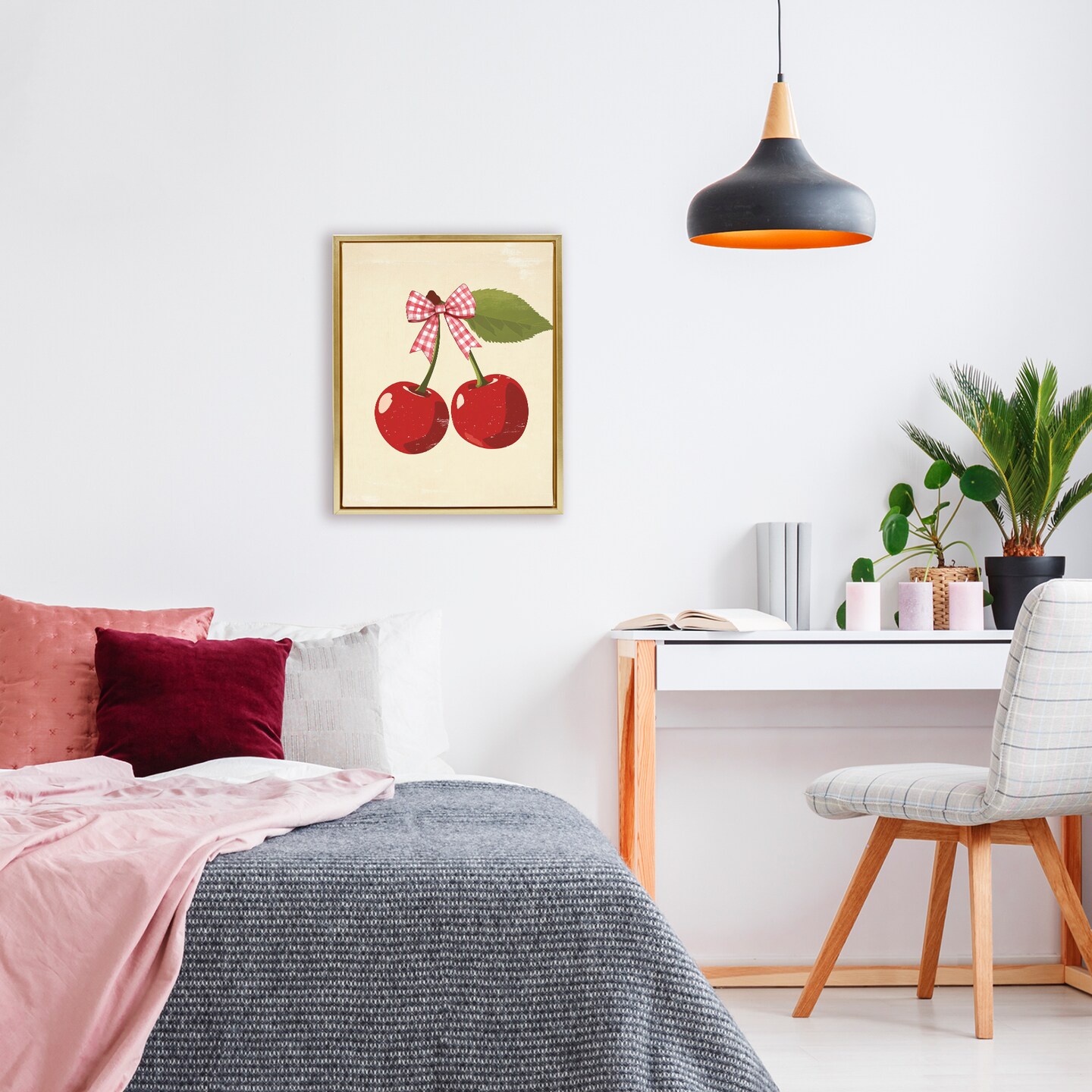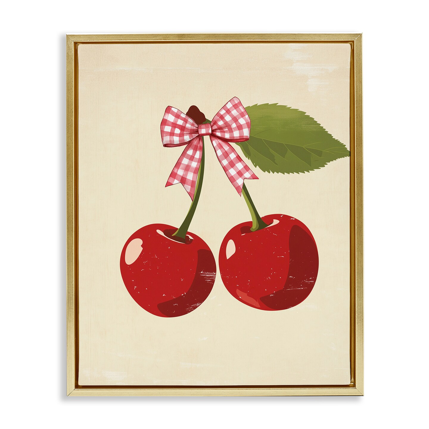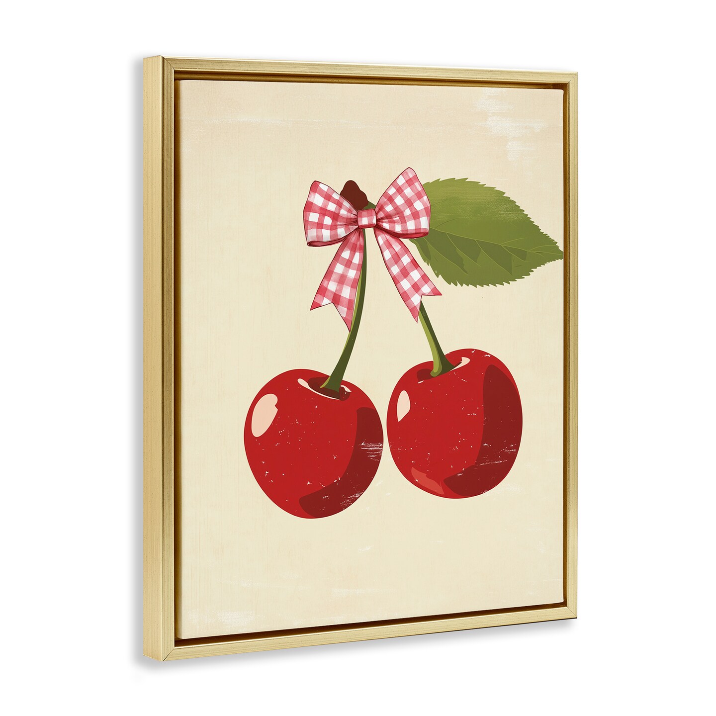 Stupell Industries Cherries with Pink Plaid Bow Floating Frame, design by Christine Simpson Art