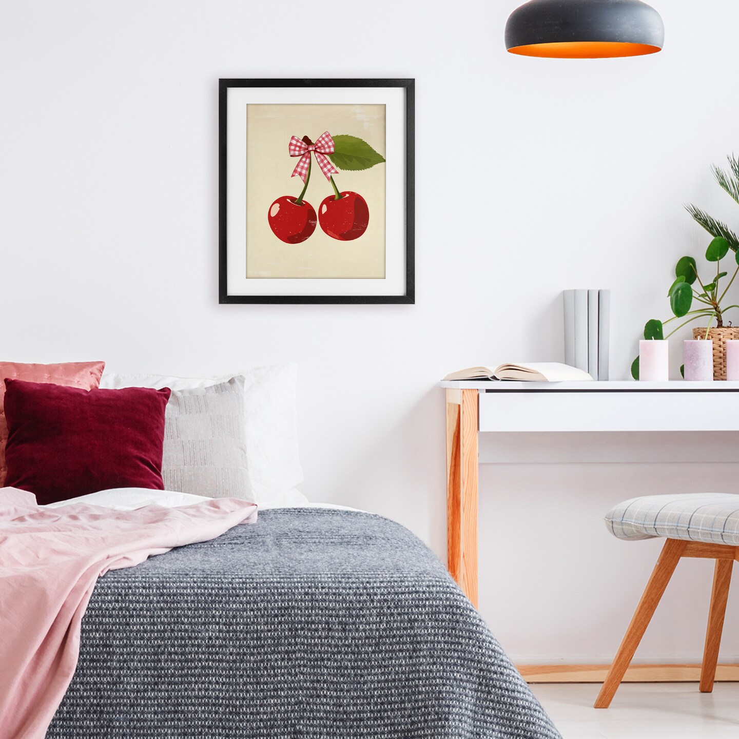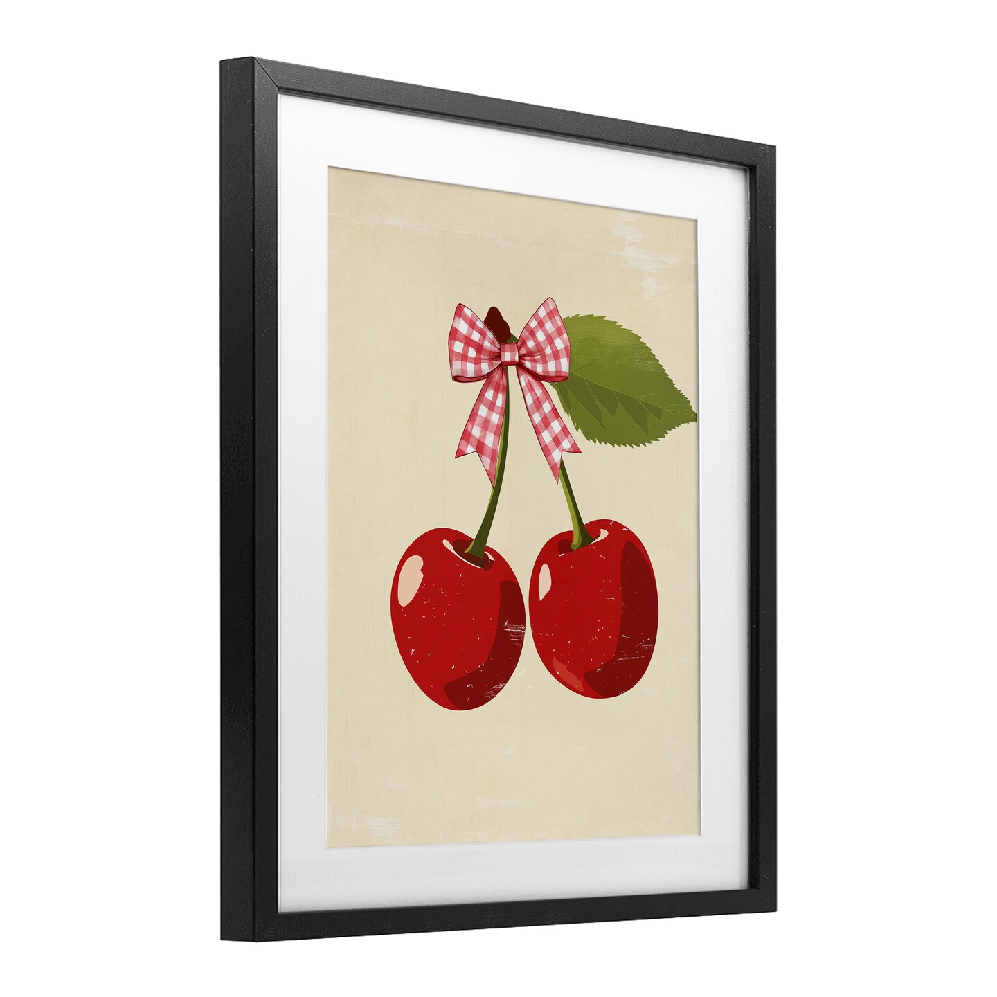 Stupell Industries Cherries with Pink Plaid Bow Framed Print Under Glass, design by Christine Simpson Art