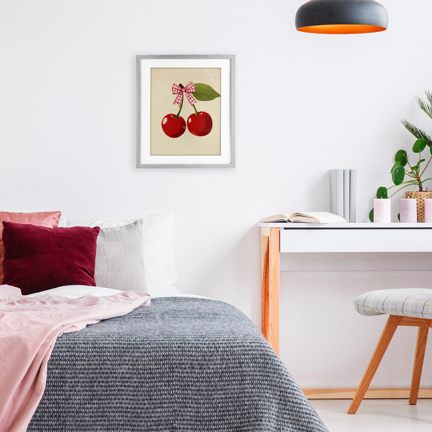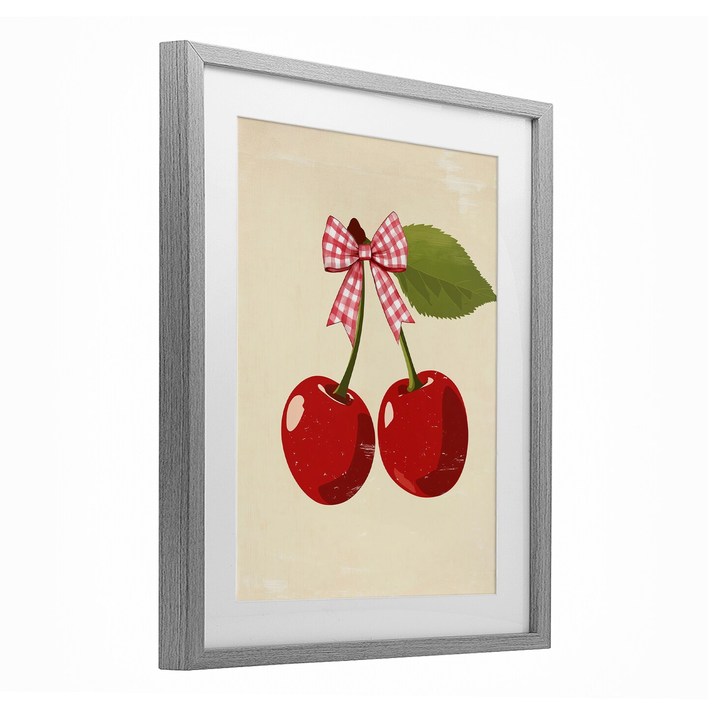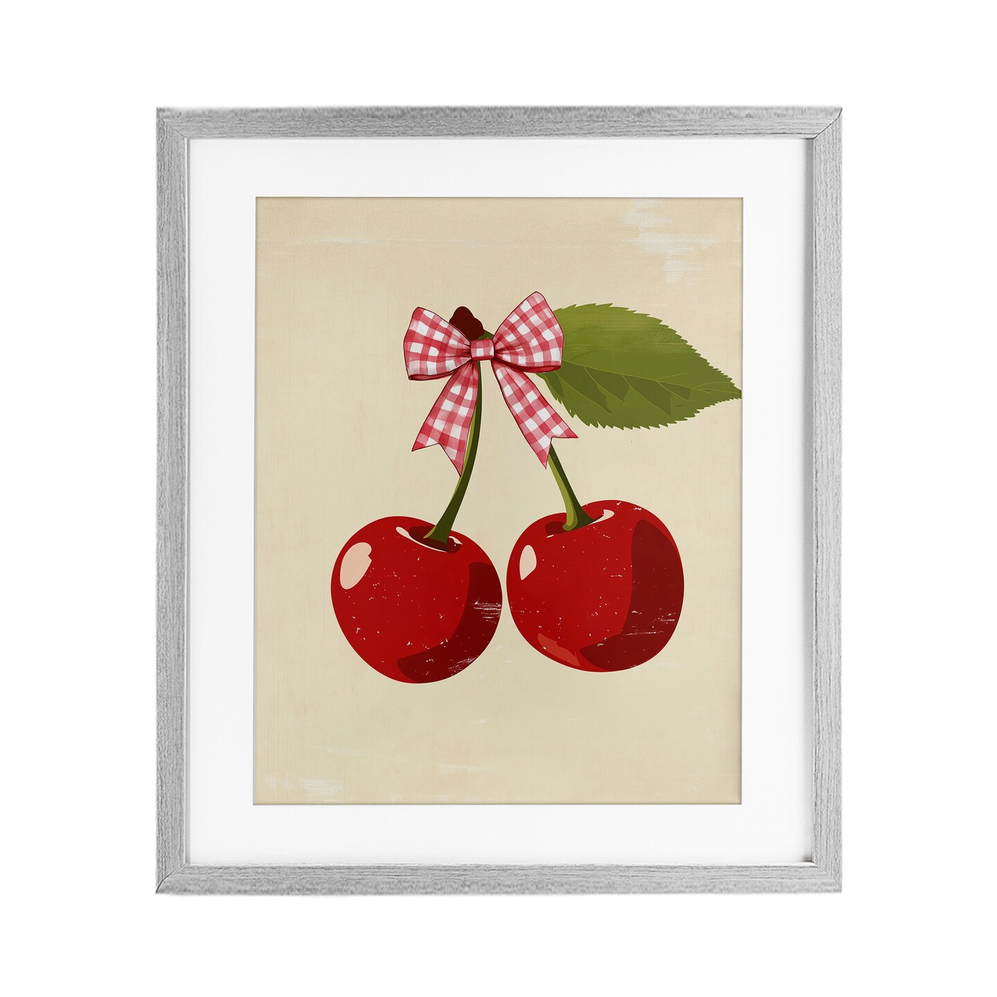 Stupell Industries Cherries with Pink Plaid Bow Framed Print Under Glass, design by Christine Simpson Art