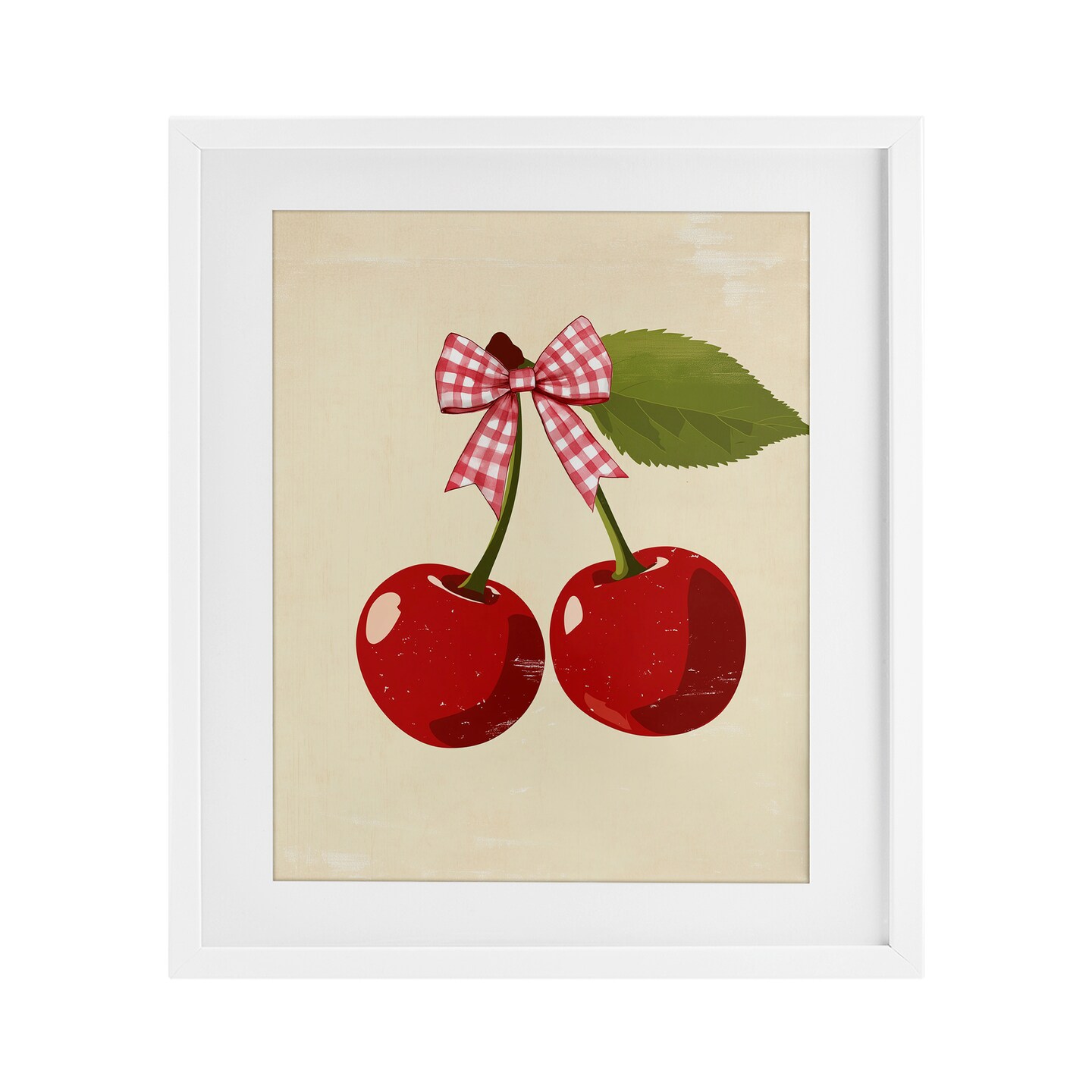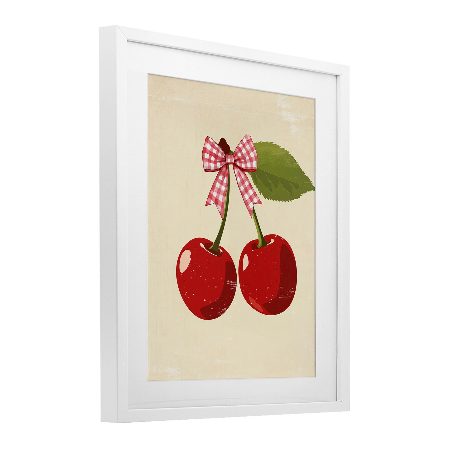 Stupell Industries Cherries with Pink Plaid Bow Framed Print Under Glass, design by Christine Simpson Art