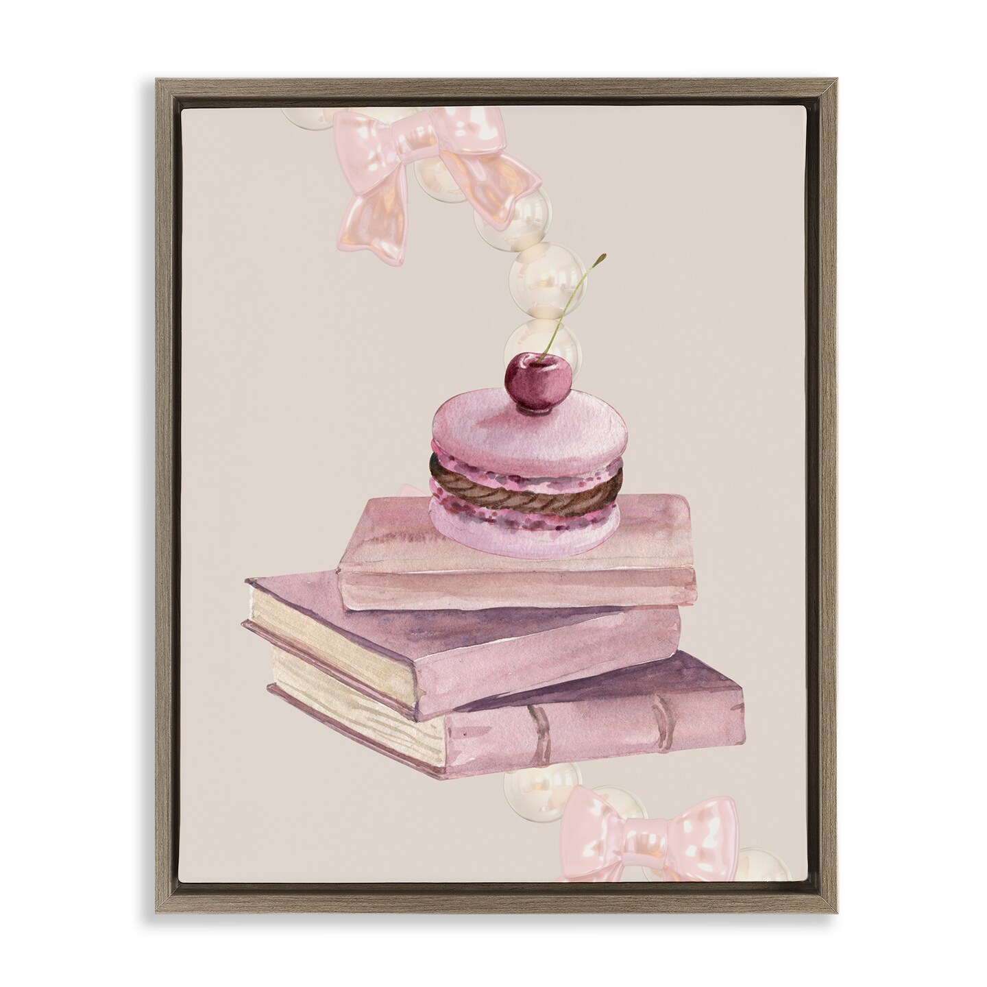 Stupell Industries Cherry Macaron on Book Stack Floating Frame, design by Jesse Keith