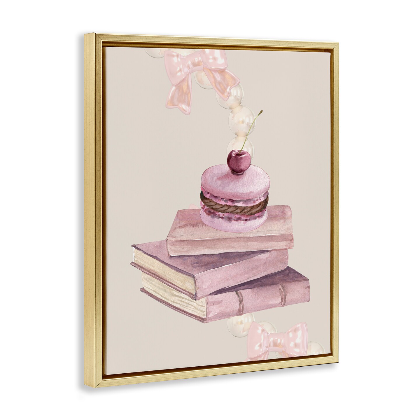 Stupell Industries Cherry Macaron on Book Stack Floating Frame, design by Jesse Keith