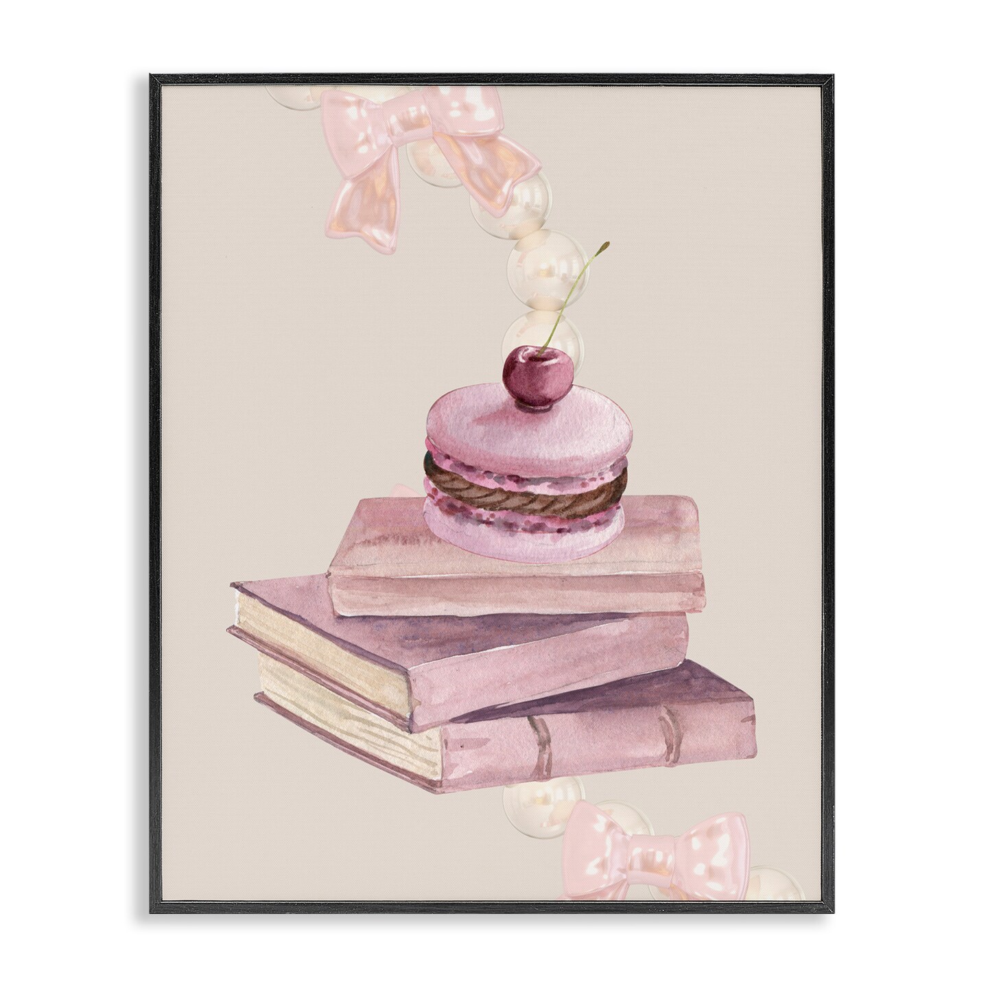 Stupell Industries Cherry Macaron on Book Stack Framed Giclee, design by Jesse Keith