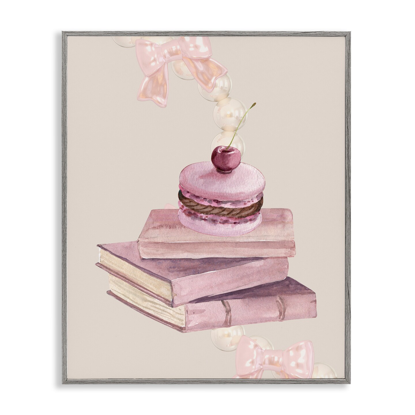 Stupell Industries Cherry Macaron on Book Stack Framed Giclee, design by Jesse Keith