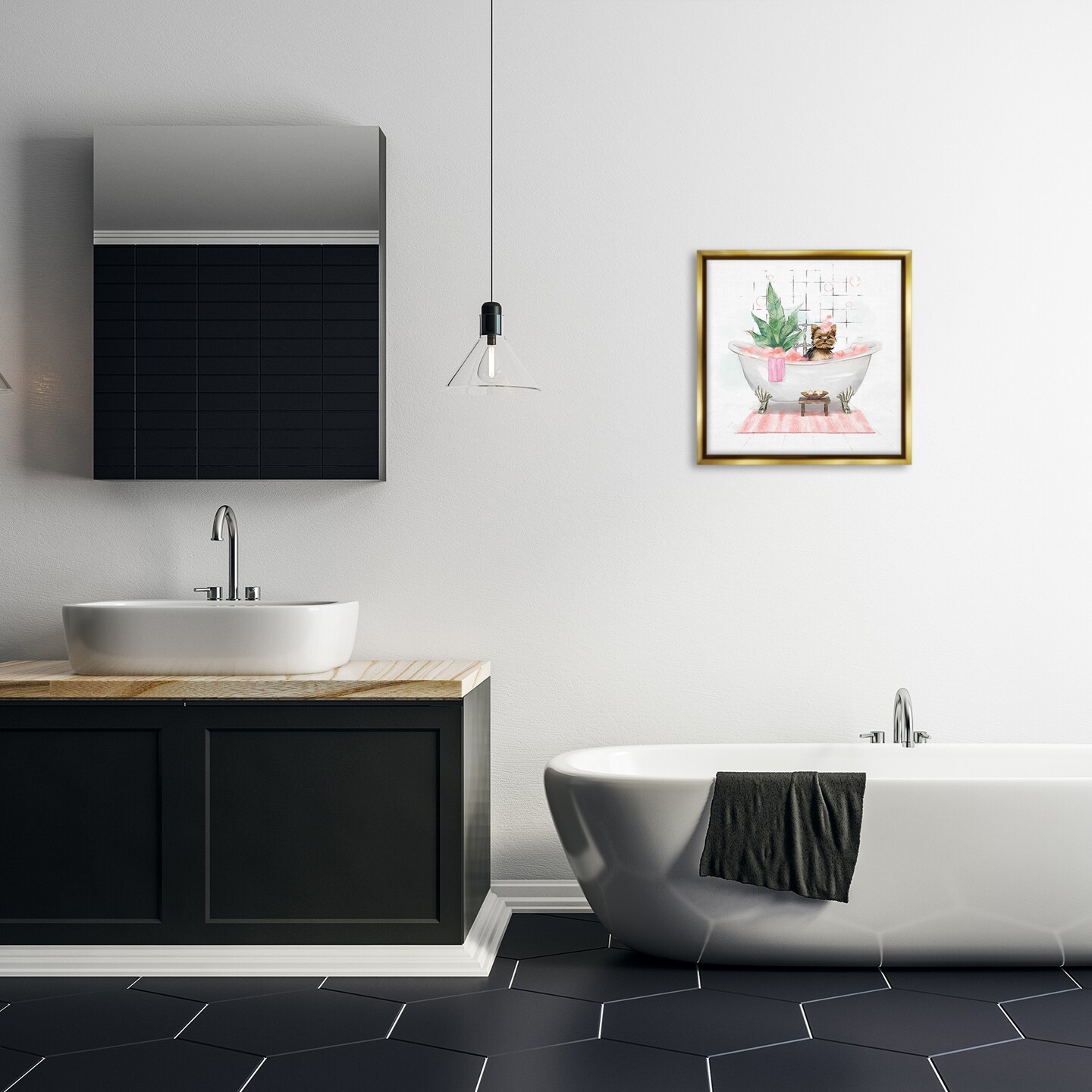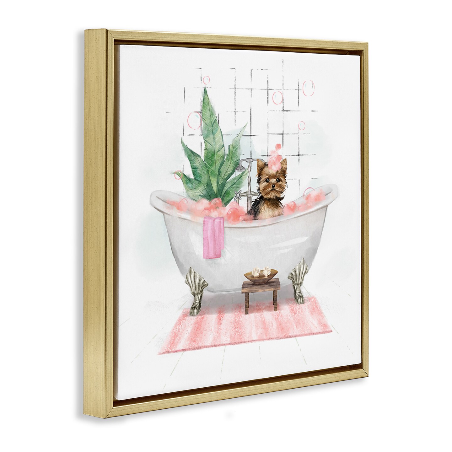 Stupell Industries Chic Yorkie Dog in Bubble Bath Framed Floater Canvas Wall Art
