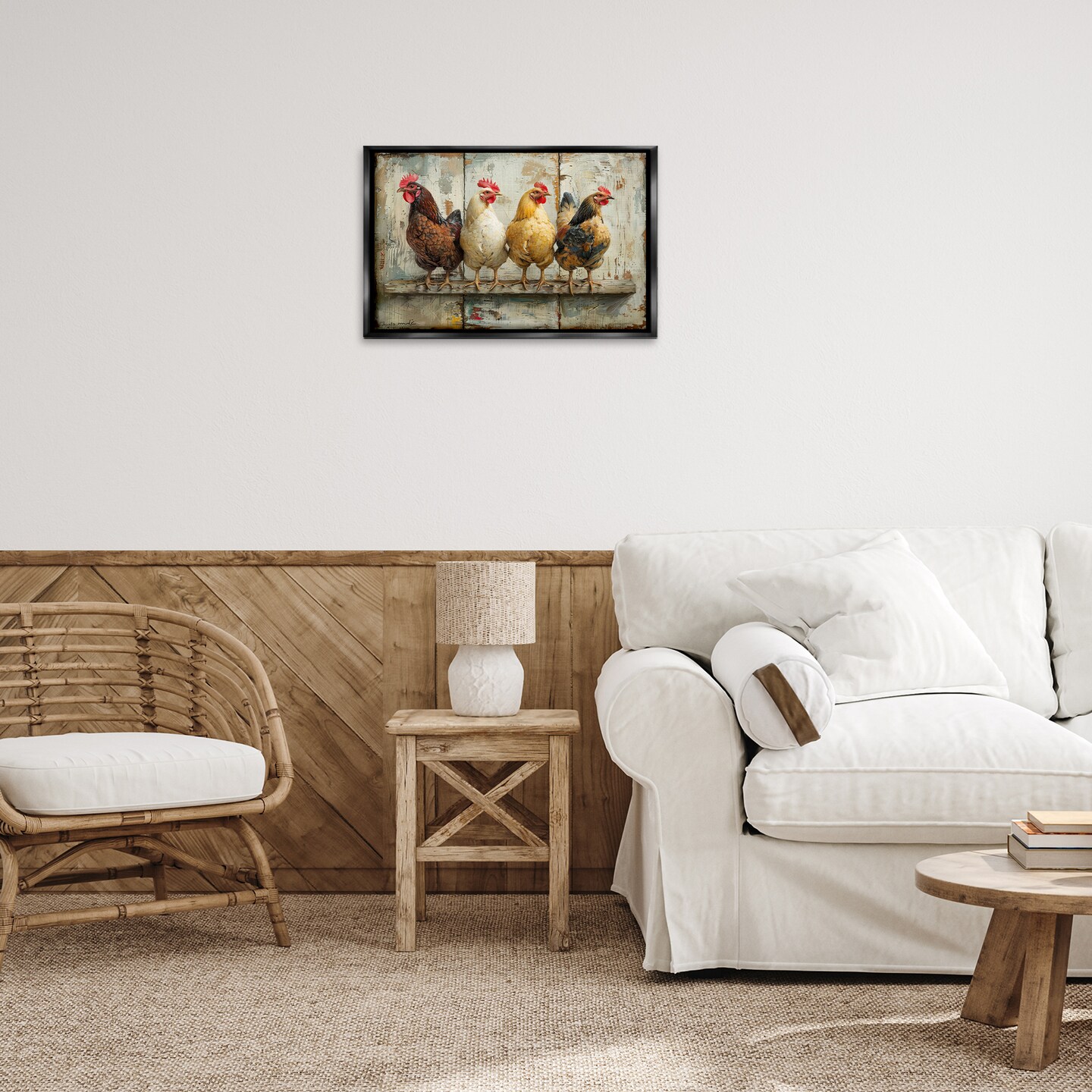 Stupell Industries Chickens In A Row Floater Framed Canvas Wall Art Design by LSR Design Studio