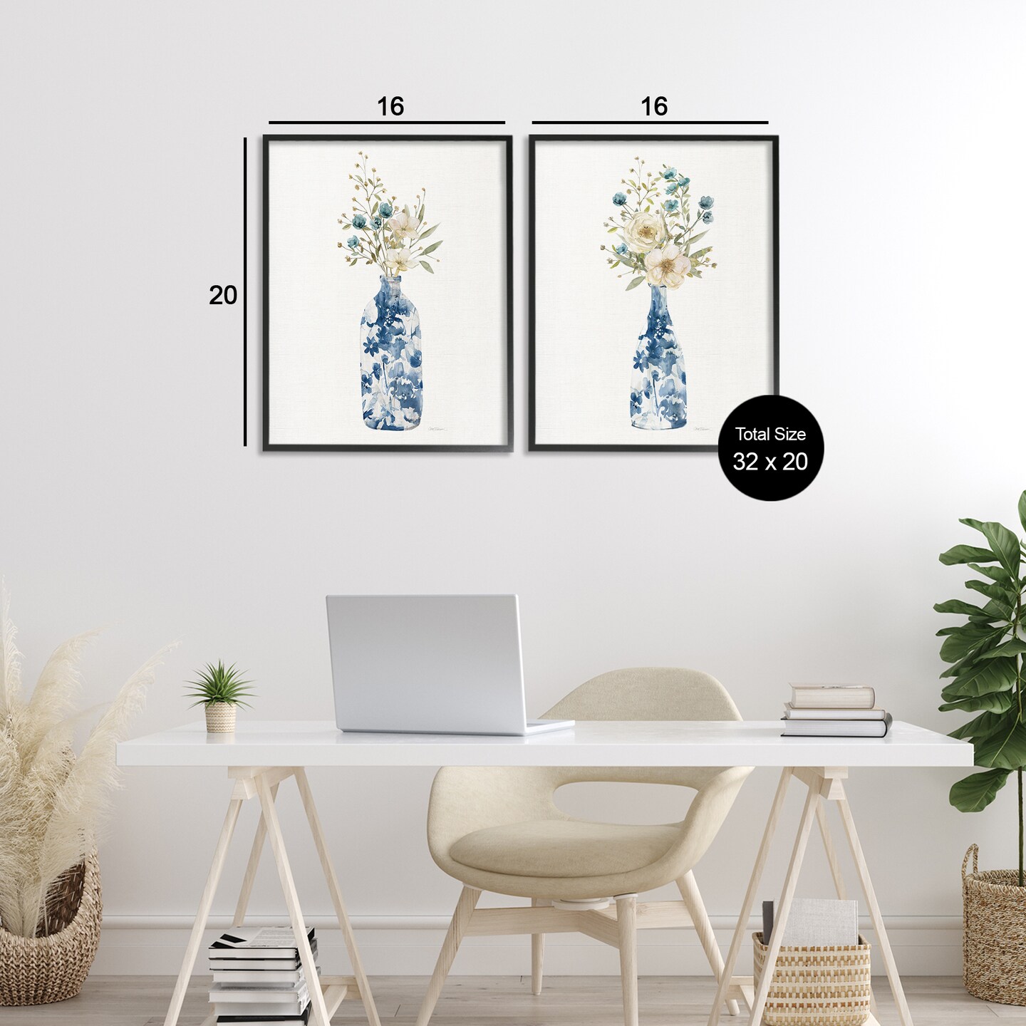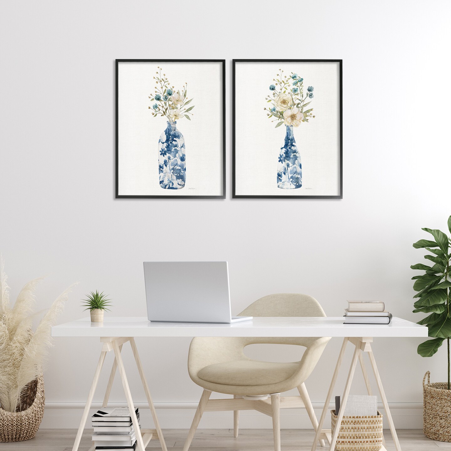 Stupell Industries Chinoiserie Blooms White Bouquets 2 Piece Black Framed Giclee Art Set, design by Carol Robinson