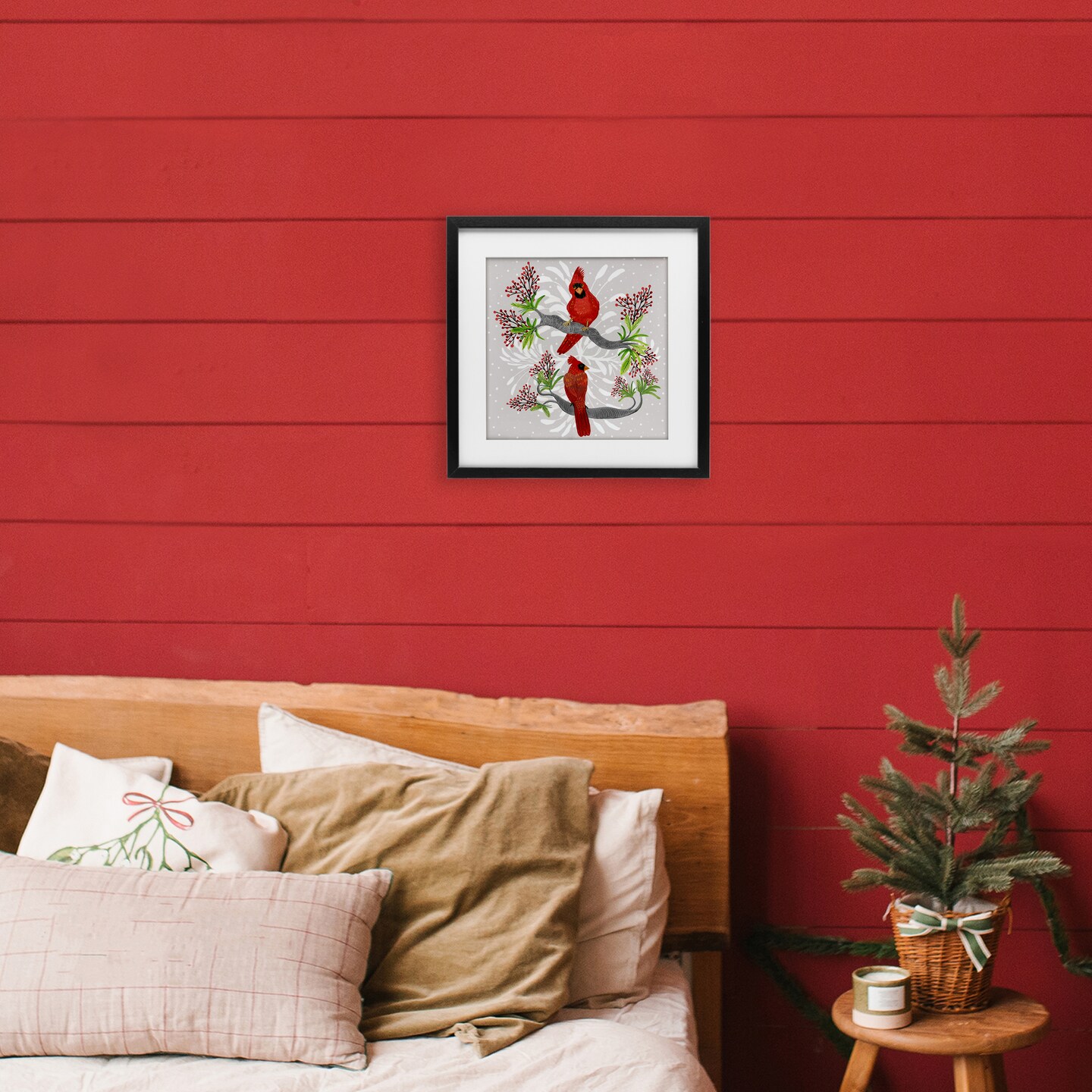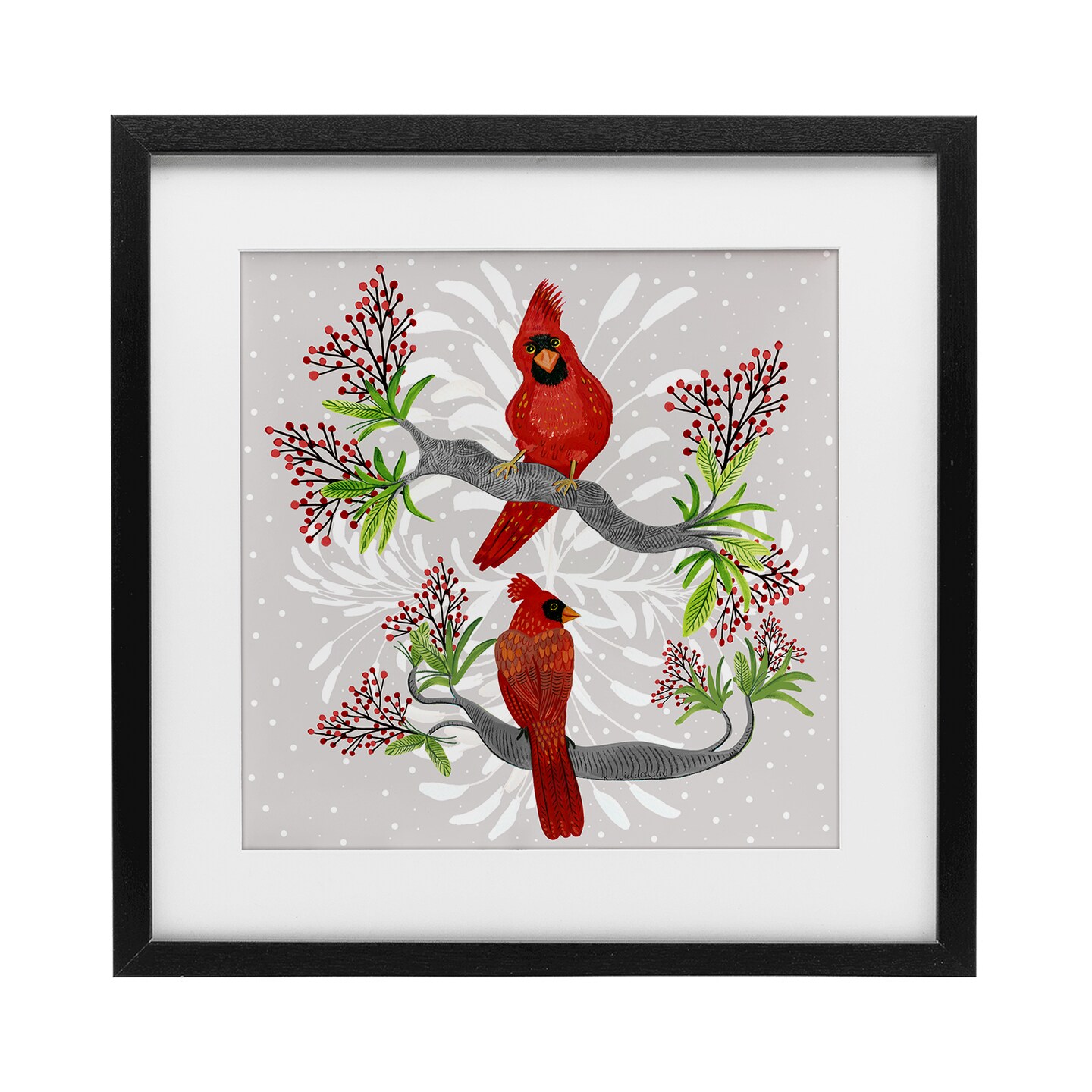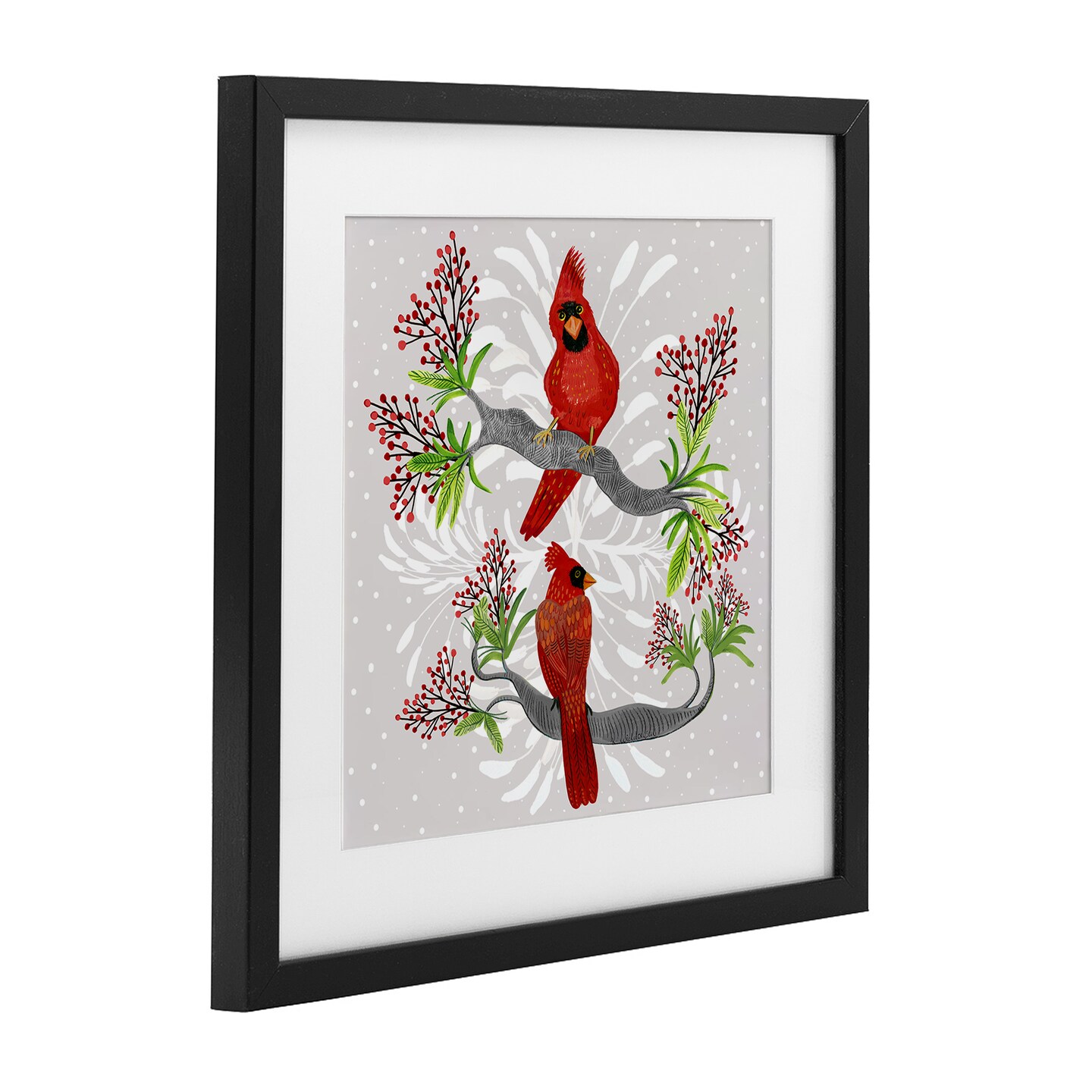 Stupell Industries Christmas Birds with Berries Framed Print Under Glass, design by Kay Widdowson