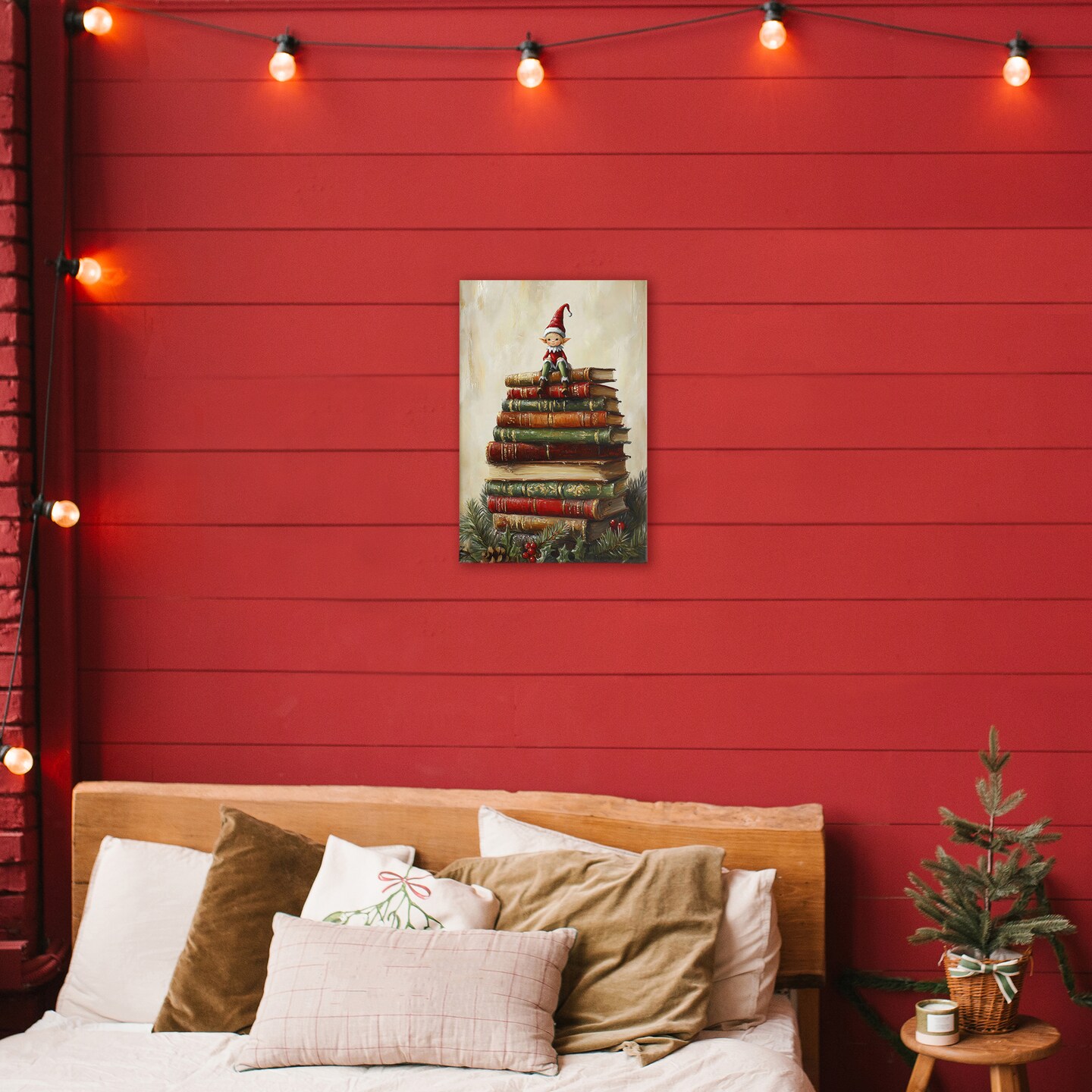 Stupell Industries Christmas Elf Bookstack Canvas, design by Petal Prints Design