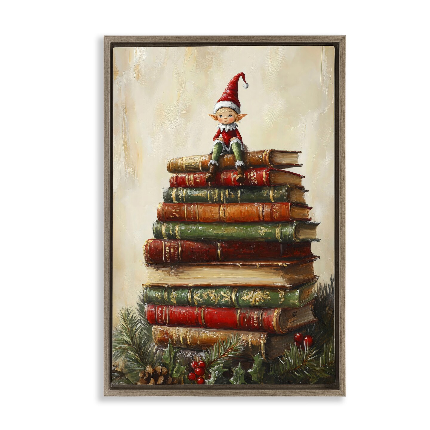 Stupell Industries Christmas Elf Bookstack Floating Frame, design by Petal Prints Design