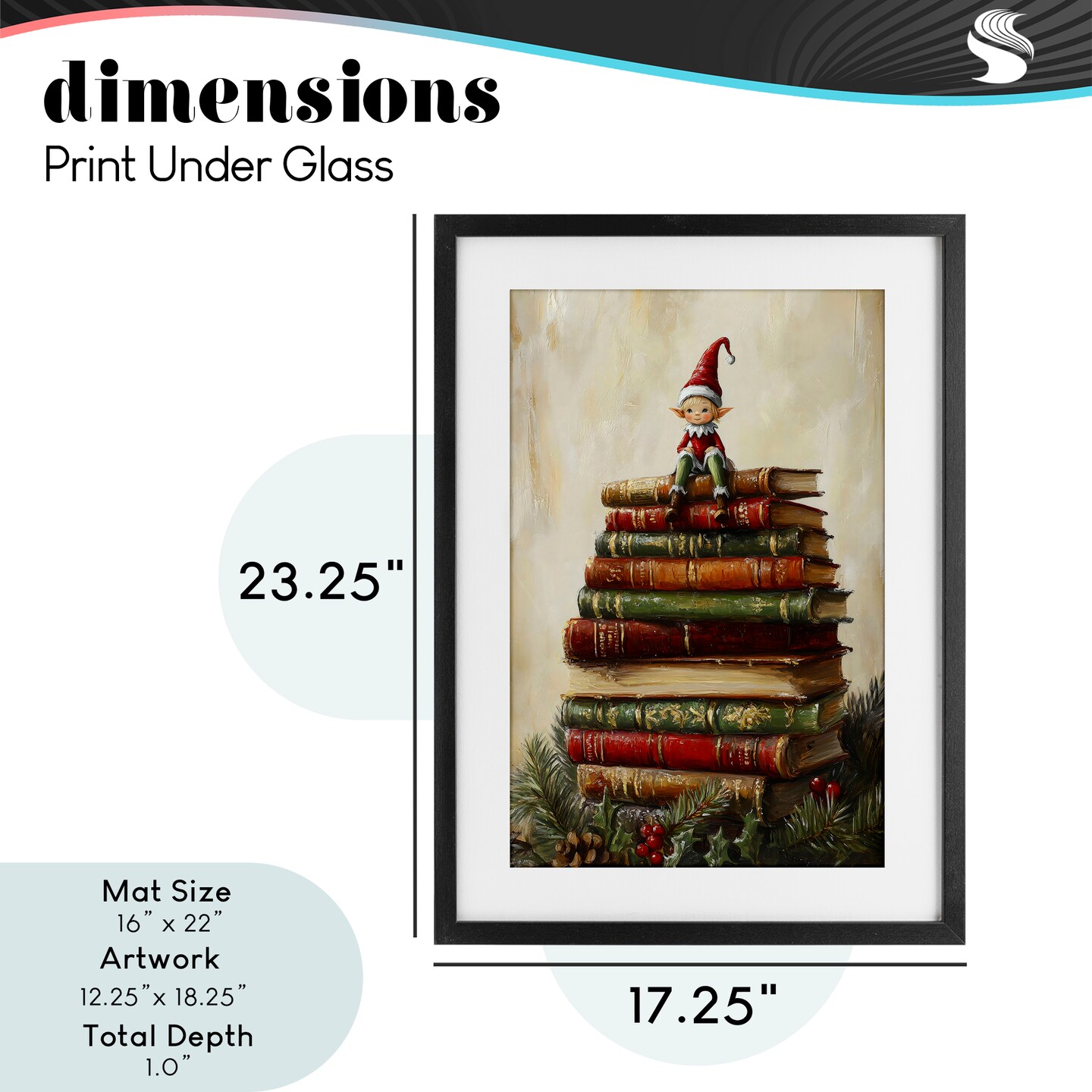 Stupell Industries Christmas Elf Bookstack Framed Print Under Glass, design by Petal Prints Design