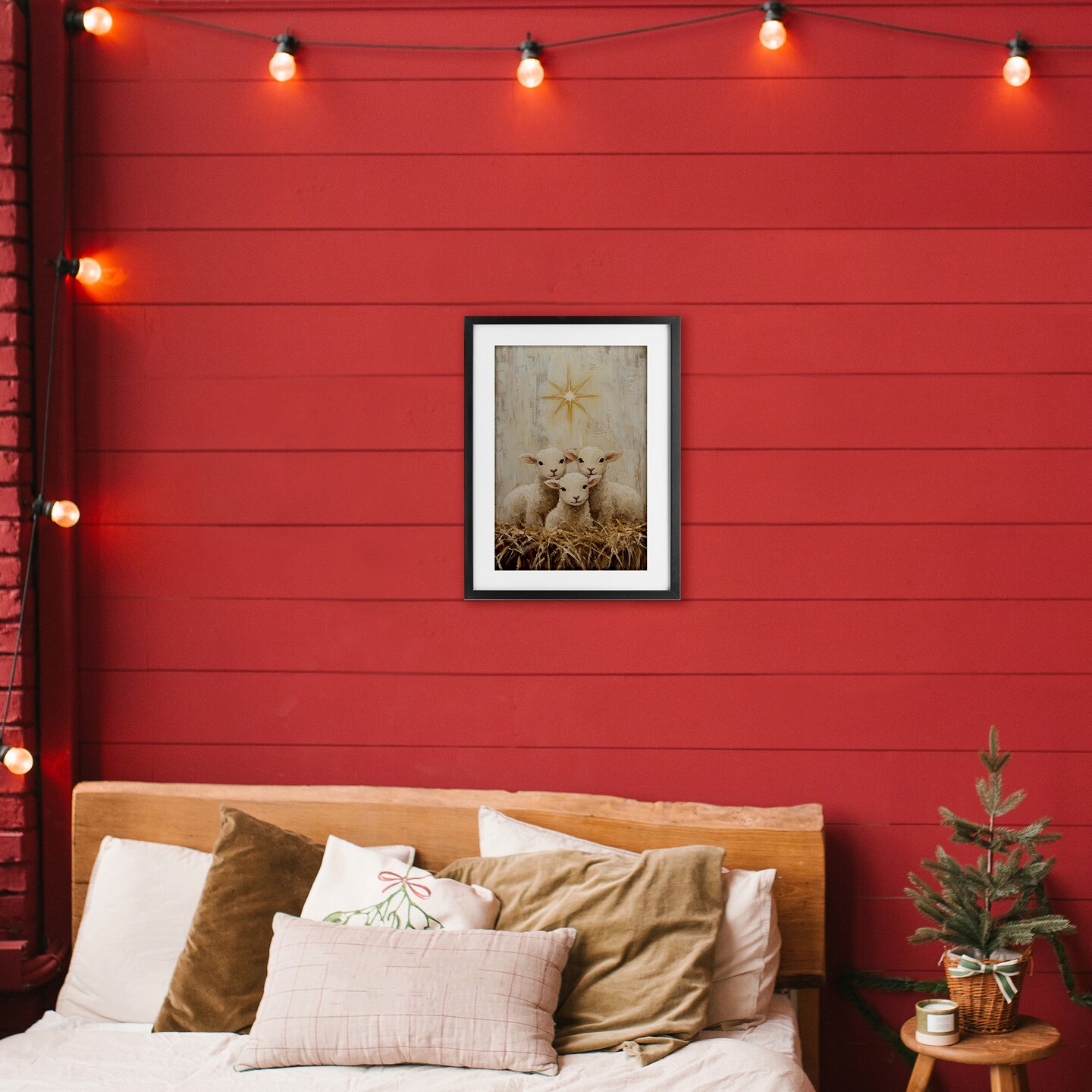 Stupell Industries Christmas Lambs Trio Framed Print Under Glass, design by Petal Prints Design