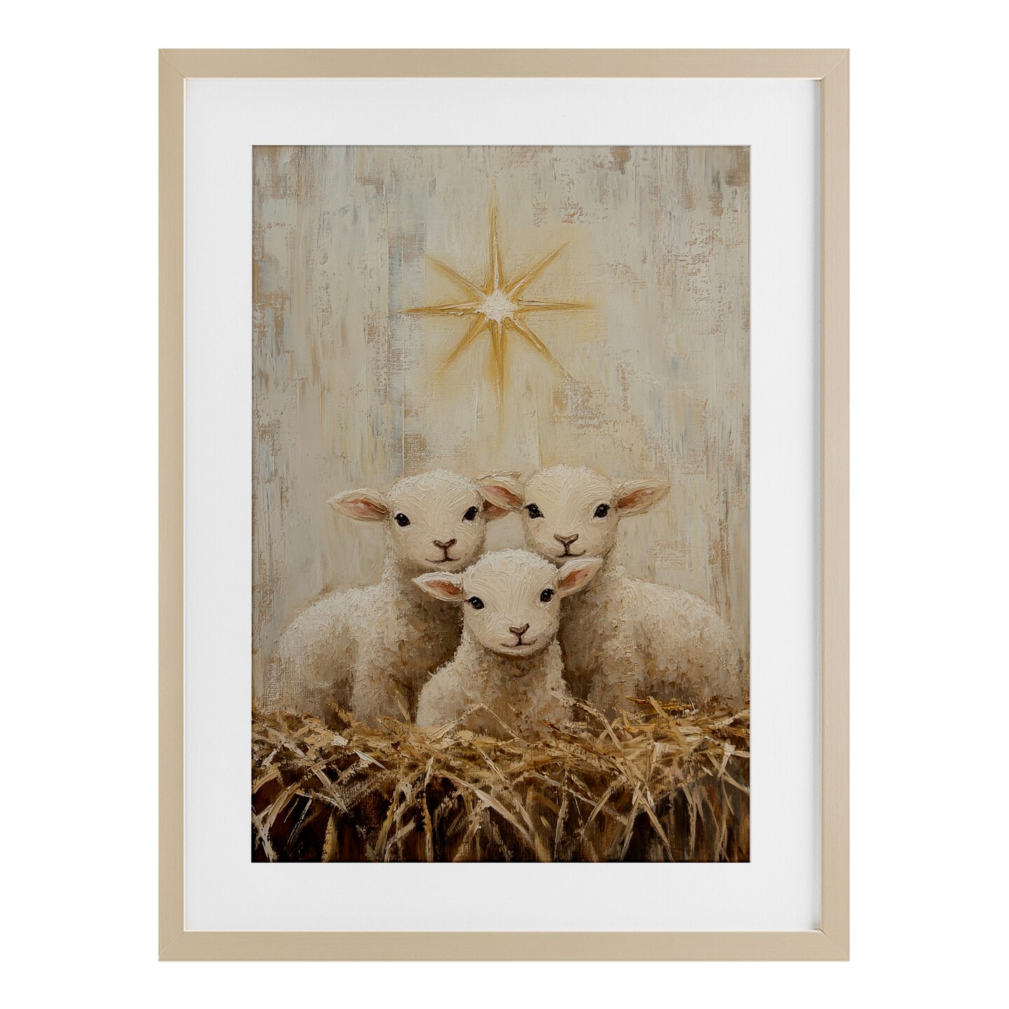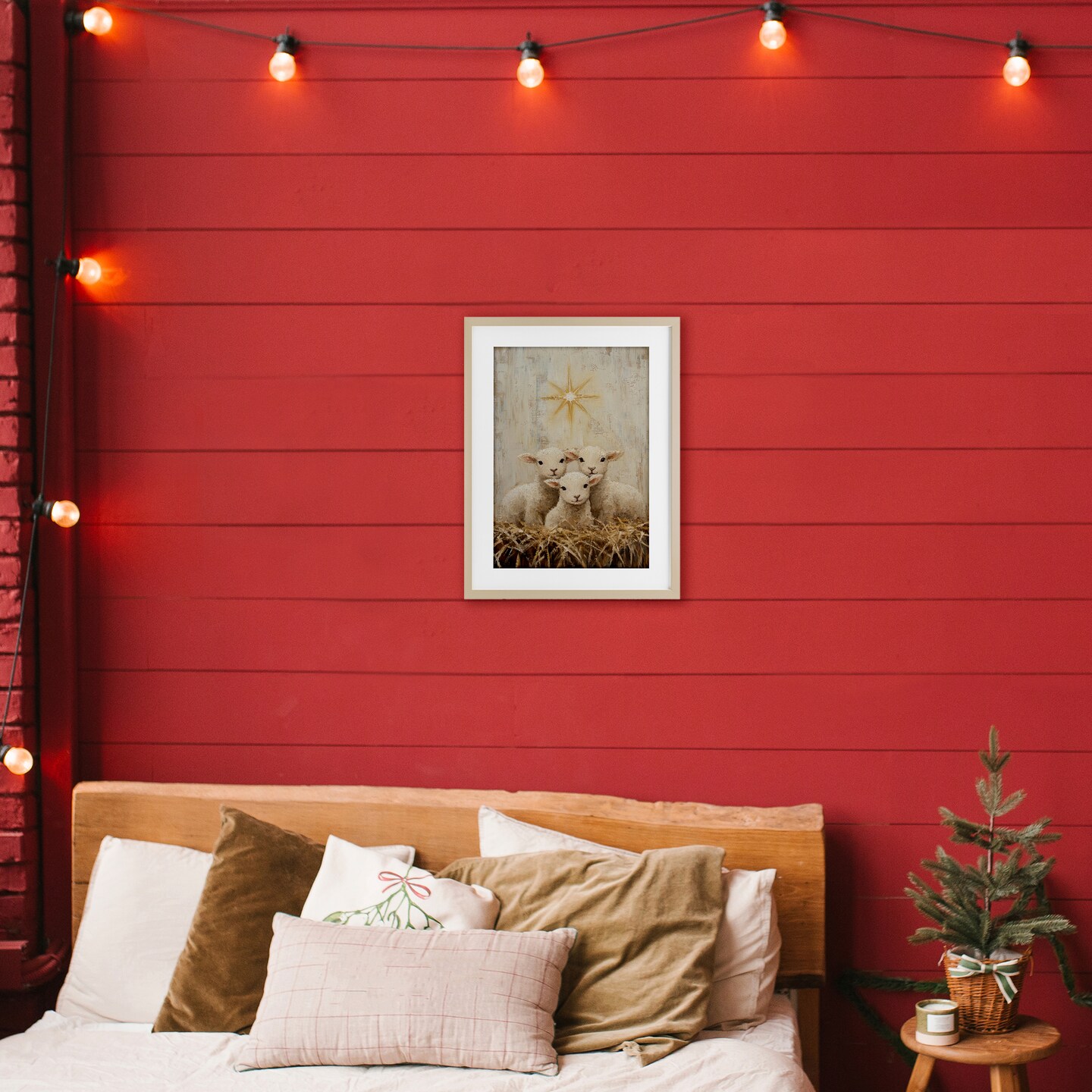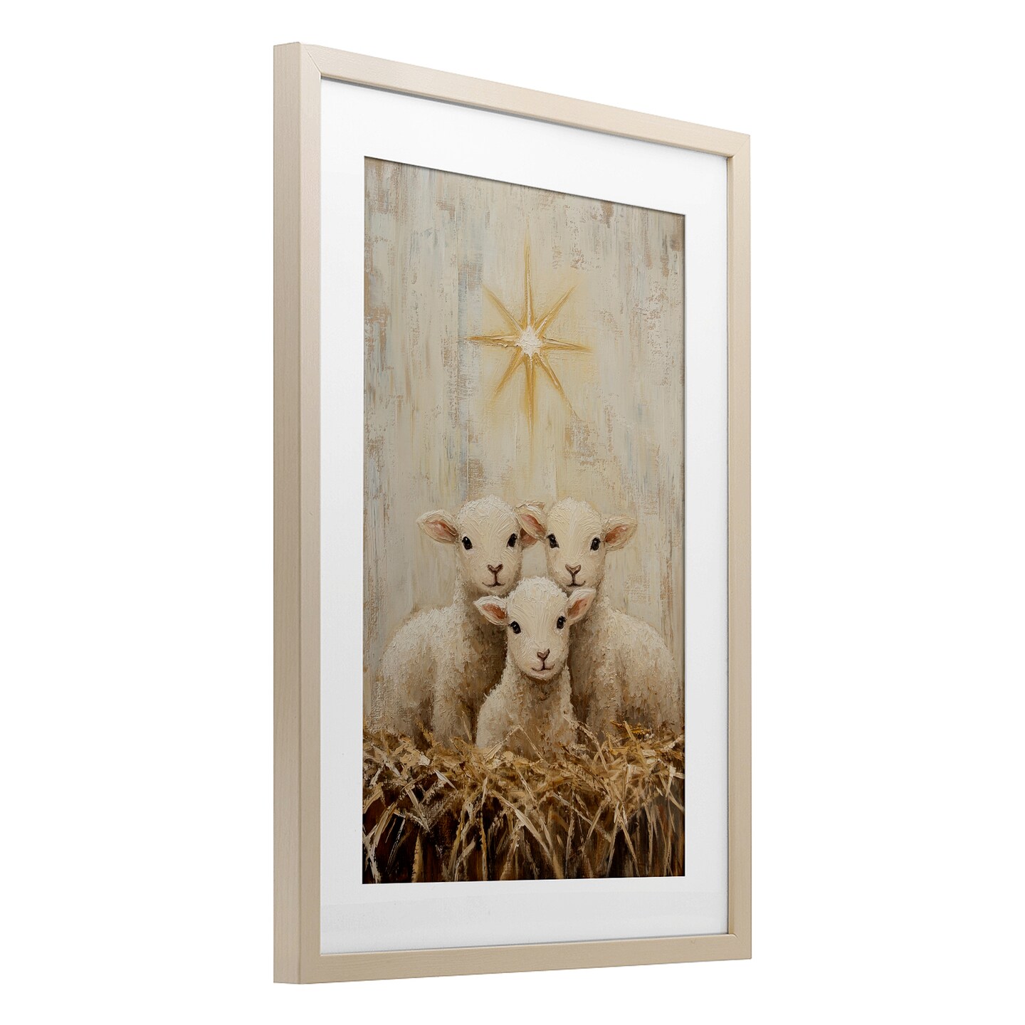 Stupell Industries Christmas Lambs Trio Framed Print Under Glass, design by Petal Prints Design