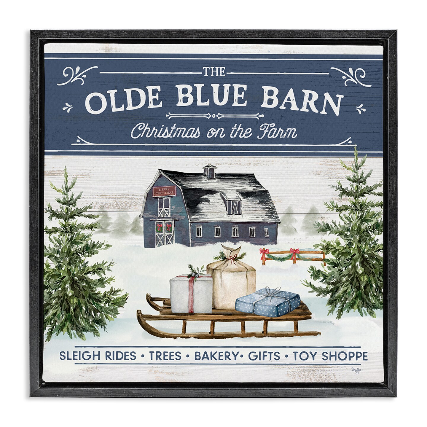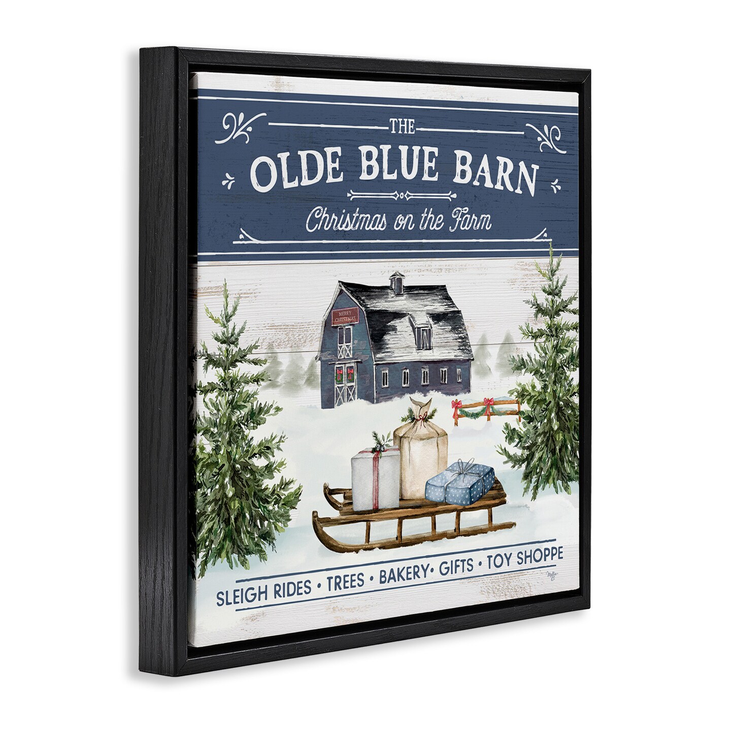 Stupell Industries Christmas on Farm Phrase Framed Floater Canvas Wall Art