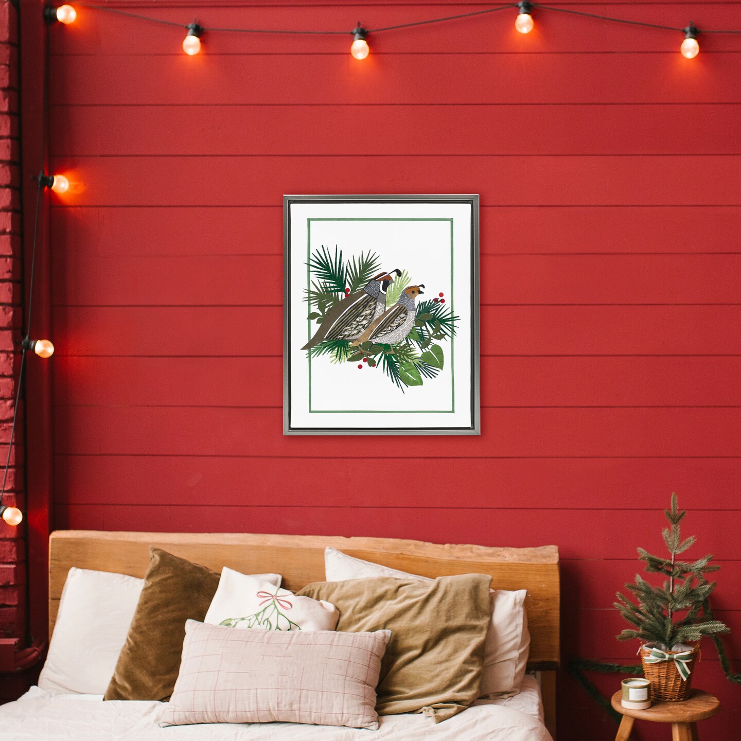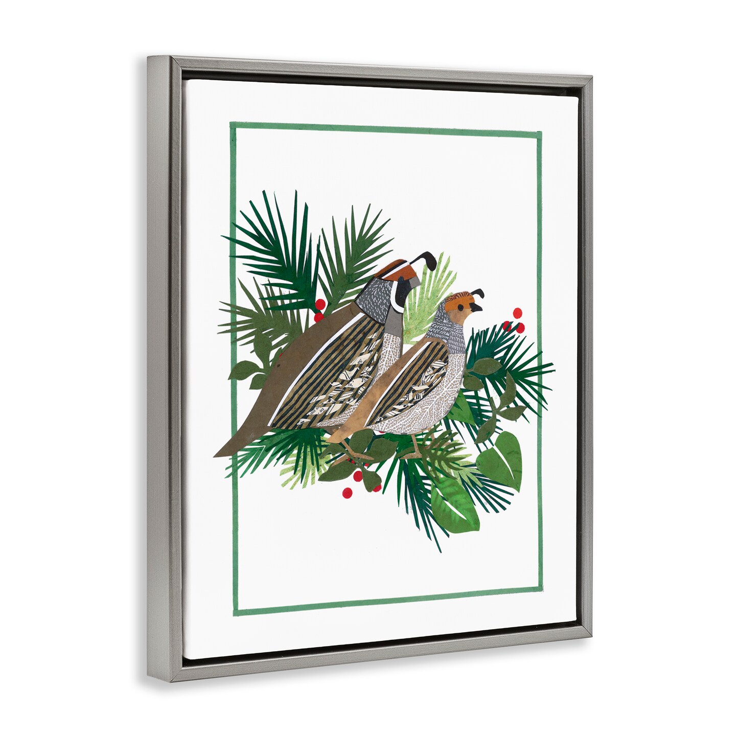 Stupell Industries Christmas Quail & Fir Floating Frame, design by Nancy Overton